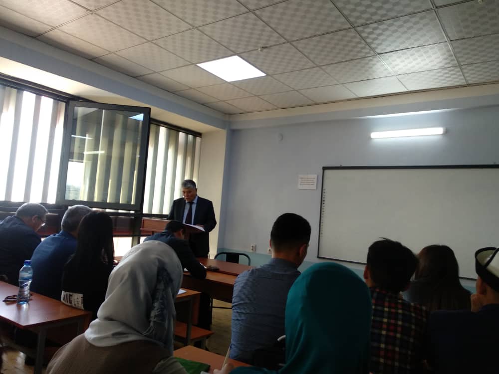Советник Полномочного Представительства МИД по Ошской, Джалал-Абадской и Баткенской областях Маматалиев Калдарали Капарович прочитал лекцию студентам ФМО на тему : "Основные направления внешней политики КР". Лекция проходила в интерактивной форме со студентами. Студенты имели возможность послушать об основных приоритетных направлений внешней политики нашей страны. А также смогли обсудить возможности прохождения практик на базе Полномочного Представительства МИД по Ошской, Джалал-Абадской и Баткенской областях.
