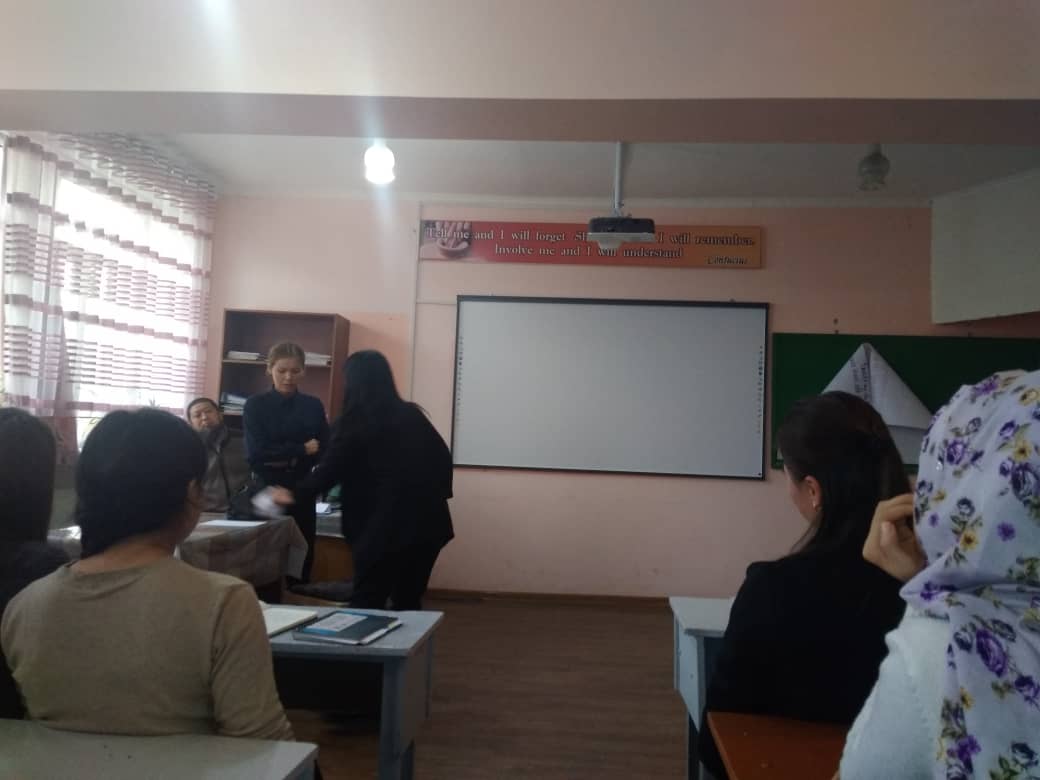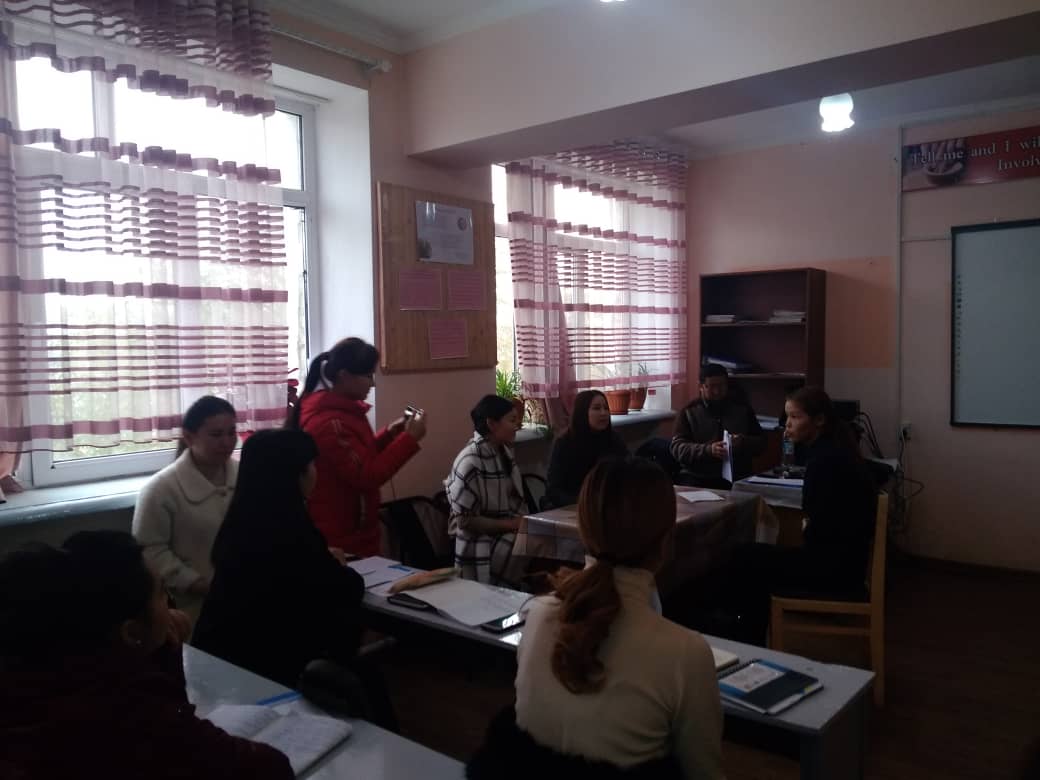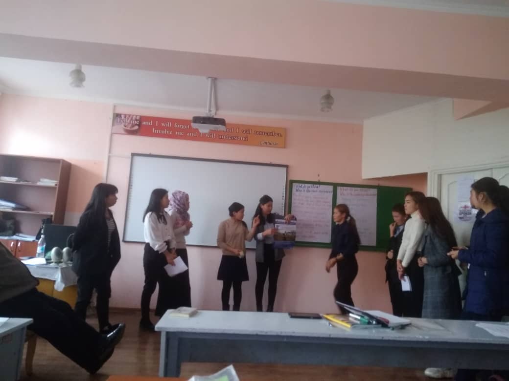 Магистранты и бакалавры на открытом занятии ст.преп., магистра Сулайманова О.М. на тему "Формирование компетенций у лингвистов: вклад преподавателей и родителей как основных стейкхолдеров"