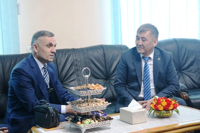 ОшМУнун ректору Кудайберди Кожобеков Түркиянын Кыргызстандагы элчисинин билим берүү иштери боюнча кеңешчиси Харун Каржы жана “Томер” түрк тилин үйрөтүү борборунун Кыргызстандагы директору Ахмет Гөзүбол менен жолугушту.
