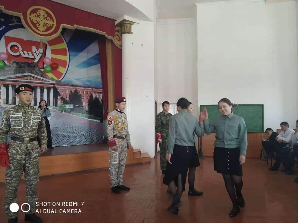 "23-февраль Ата Мекенди коргоочулар күнүнө" карата 9-10-класстар арасында "Билим менен билек айкалышканда" аттуу мелдеш болуп өттү. Аталган мелдеште командалардын бирдиктүү формасына, логикалык ой жугуртуулорунө жана командалык ишмердүүлүктөрунө башкы маани берилип, калыстар тобунун чечими менен мелдеште 10- "в" класс жаңишке жетти .Басса айта кетчү нерсе, мырзалардын отжимания жана гиря көтөрүу боюнча сынагы мелдештин коркун ачты. 1-2-3-орунду камсыз кылган командалар кызыктыруучу белектер жана грамоталар менен сыйланышты.