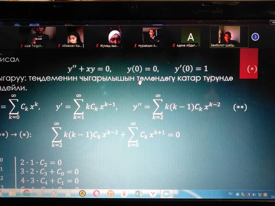 2020-жылдын 13-майында ОшМУнун Математика жана информациялык технологиялар факультетинде «Математикалык анализ» кафедрасы тарабынан ОшМУнун 80 жылдык мааракесине жана аймактарды өнүктүрүү, өлкөнү санариптештирүү, балдарды коргоо жылына арналган “Санарип окутуучу-санарип студент” аттуу эл аралык on-line илимий жумалык жана V илимий-практикалык конференциясынын “Математиканын актуалдуу маселелери” аталыштагы 2 секциялык иши өткөрүлдү.