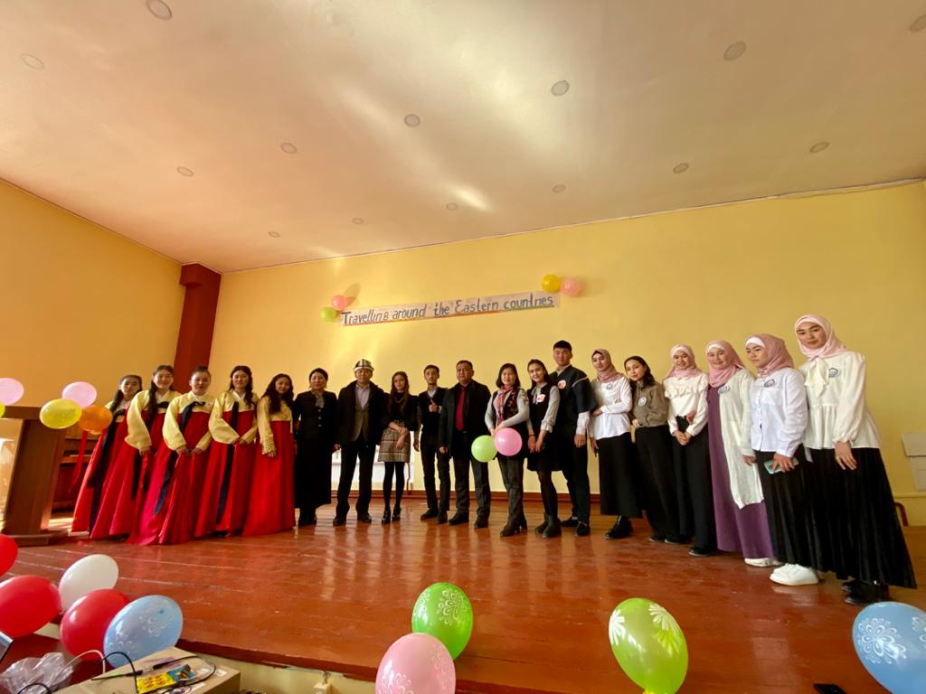 Преподаватели английского языка кафедры ПИЯ, Эшболотова Кансулуу и Шадыбекова Гулжамал провели фестиваль английского языка по теме « Путешествие по восточным странам». Данное мероприятие сопровождалось песнями, танцами и интересными номерами на английском языке. Студенты первых курсов также продемонстрировали национальные восточные обряды.