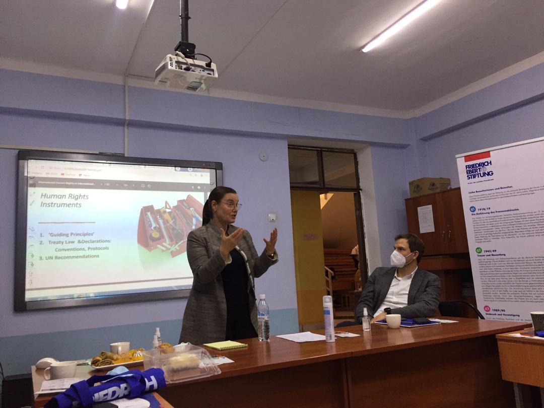 На факультете международных отношений прошел семинар на тему " Права человека в международных отношениях". Профессор DAAD в Академии ОБСЕ Аня Мир представила интересный доклад про историю развития прав человека и поделилась информацией о продвижении прав женщин в 21 веке.