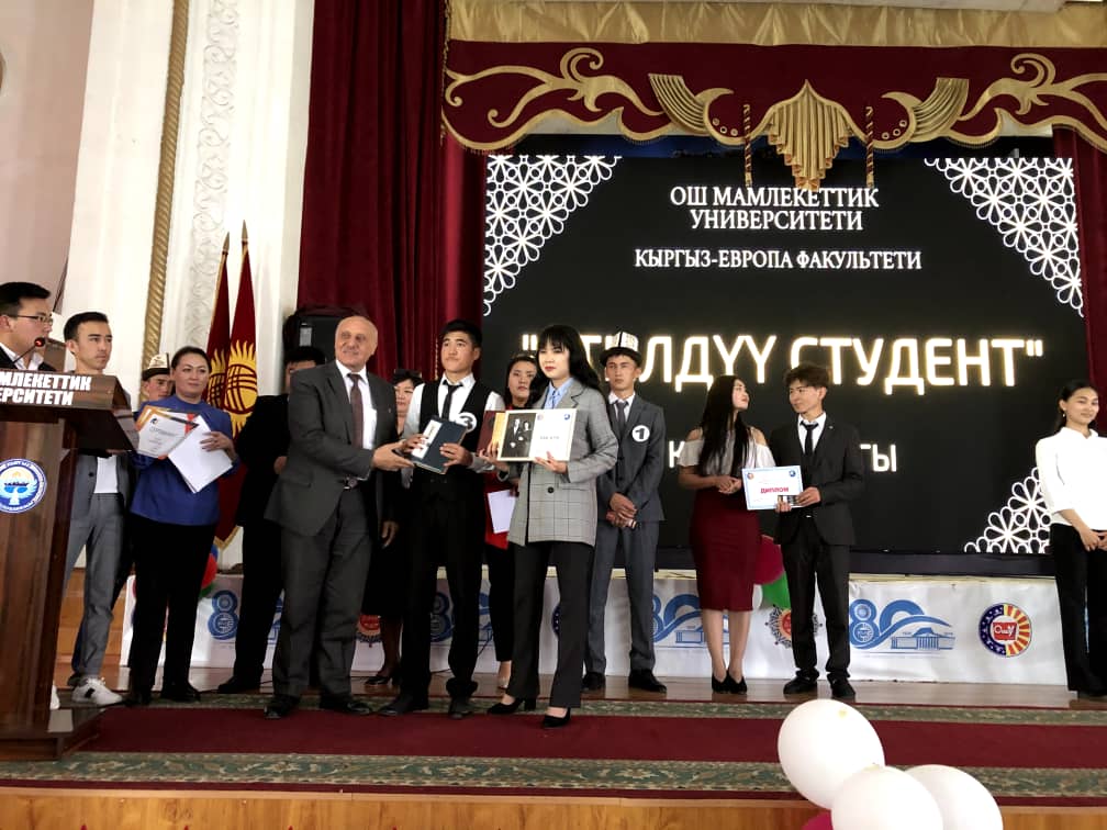 2-орун КЕФнин II даражадагы диплому, ОшМУ Жаштар кеңешинин баалуу белектери, К-ЛЭНД окуу борборуна англис тил курсуна 30%дык арзандатуучу 2 сертификат;