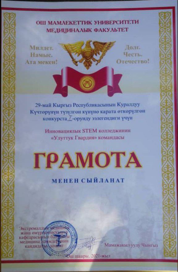 «Национальная Гвардия» инновационного колледжа STEM выиграла 1-место на