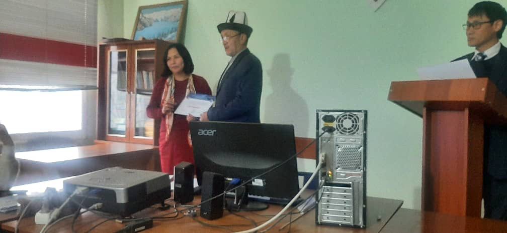 На конференции выступили 2-ое наших магистрантов (Абдумалик к Н., Жусупова Г.) с докладами на тему Абдумалик к Н. “Эпидемиологическая ситуация ко-инфекции ВИЧ/Туберкулез на примере Ошской области”, Жусупова Г.“Анализ летальности – ВИЧ инфицированных в г.Ош и Ошской области”, ы конце конференции выдали сертификаты за активное участие.