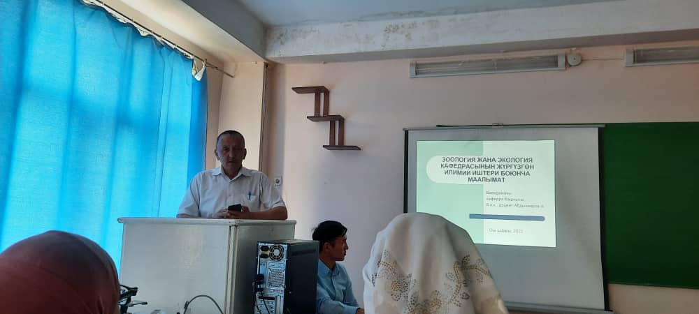 Зоология жана экология кафедрасында 19-апрель күнү Кыргыз Республикасынын Президентинин “2022-жыл Тоолордун экосистемасын коргоо жана климаттык туруктуулук жылы” жарлыгына карата уюштурулган “ Табигый илимдердин эффективдүүлүктөрүн жогорулатуудагы актуалдуу маселелер ” аттуу илимий жумалыгы болуп өттү. Иш-чара төмөндөгүдөй программада өткөрүлдү: