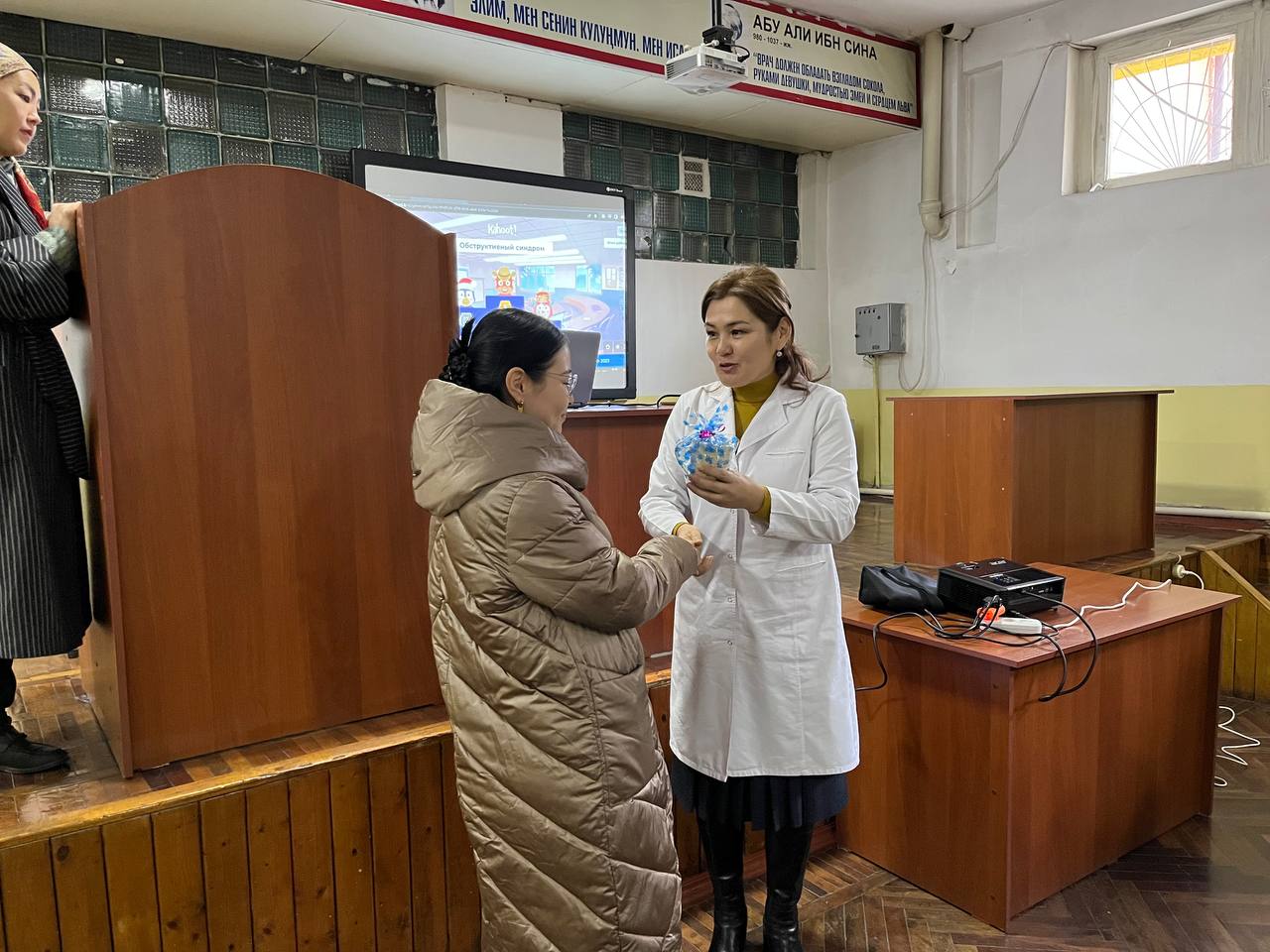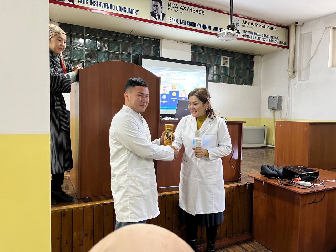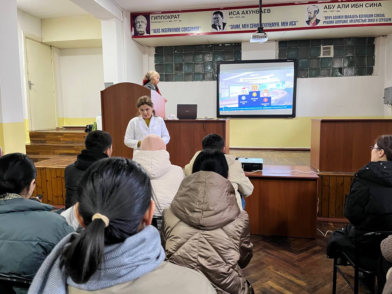 Дарылоо иши адистигинин 6-курстарынын студенттеринин арасында, жыйынтыктоочу лекция учурунда КАХУТ программа боюнча "Уй-булолук медицина" жана "Внутренние болезни 5" предметтеринен студенттердин билим денгээли сыналды. Ички оорулар 3 кафедрасынын окутуучуларынын эсебинен алдынкы орунду ээлеген жана жыл аралыгында озун мыкты корсоткон, жыл бою лекцияга кеч калып келген студенттерге белектер ыйгарылды!