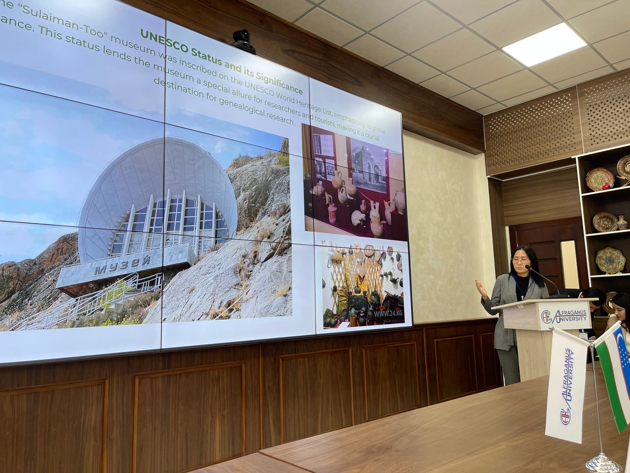 2023-жылы 17-ноябрда Ташкент шаарындагы Alfraganus университетинде болуп өткөн “Үчүнчү ренесанс - билим жана өнүгүү: өтмүш, бүгүн жана келечек” аттуу I эл аралык студенттик конференцияга ОшМУнун табият таануу, туризм жана агрардык технологиялар факультетинин туризм программасынын 1-курсунун магистранты Сагынбек кызы Глафира (илимий жетекчиси проф. А.Г.Низамиев), туризм программасынын бакалавр багыты боюнча 4-курсунун студенттери Нурбек кызы Нургиза жана Абдирашит кызы Канзадалар (илимий консультанты доцент Г.А. Момошева) катышышып келишти. Магистрант жана студенттер өздөрүнүн изилдеген темалары боюнча кызыктуу доклад окуп, сертификатка ээ болушту. Группаны экономикалык география, тармактык экономика жана туризм кафедрасынын окутуучусу Базарбаева Гүлкайыр жетектеп барды.