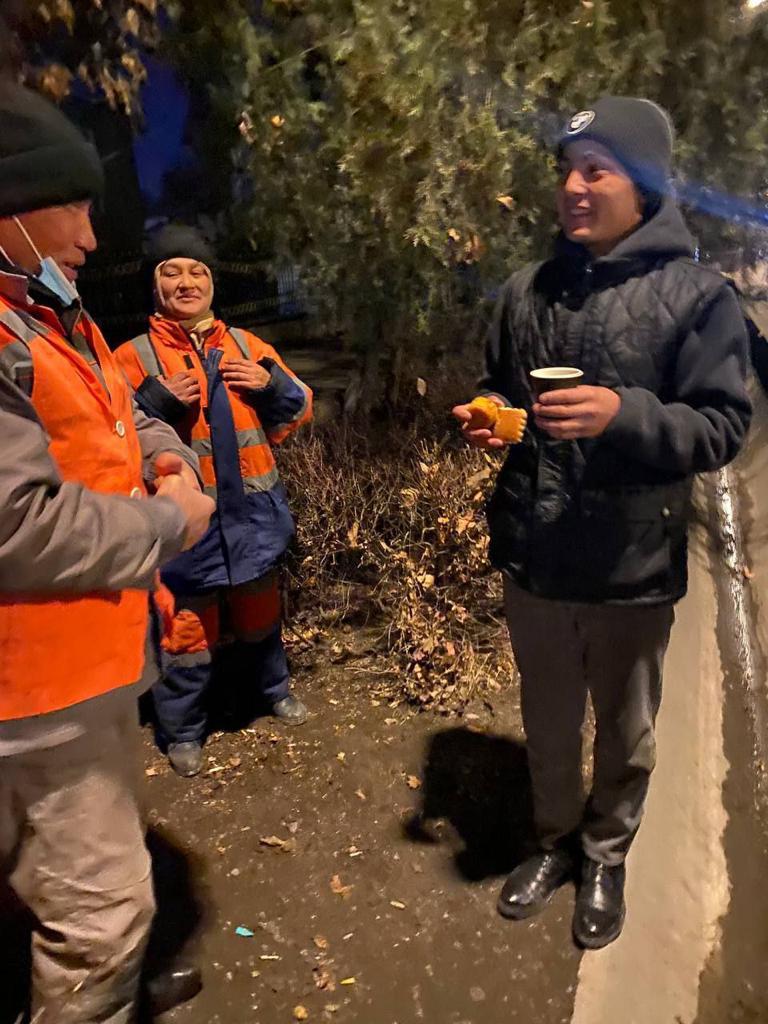Студенты кафедры агрономии и ветеринарной медицины факультета естествознания, туризма и аграрных технологий организовали акцию "Дарить тепло" и подали теплый чай сотрудникам "ОШ-ТАЗАЛЫК", которые следят за чистотой города.