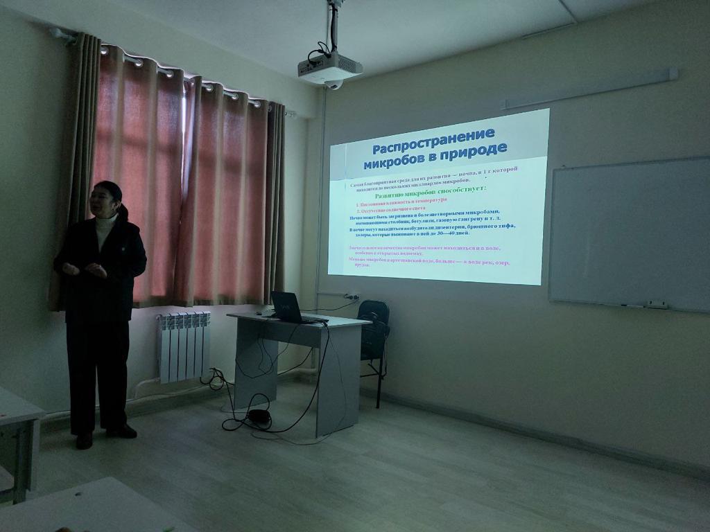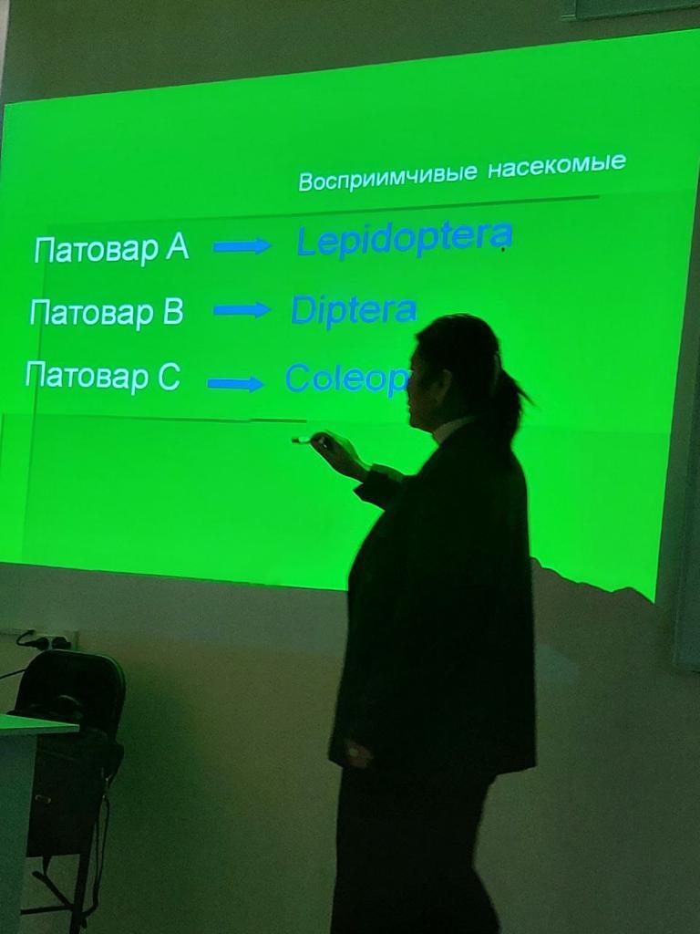 Для студентов факультета естествознания, туризма и аграрных технологий ОшГУ, обучающихся по специальности "агрономия", была проведена гостевая лекция по предмету "микробиология". Лекцию читал доцент ОшГУ, к.н.б. Тешебаева Зулумкан Абдыманаповна, дала представление об общих микроорганизмах и способах борьбы с вредителями сельскохозяйственных культур биологическими методами.