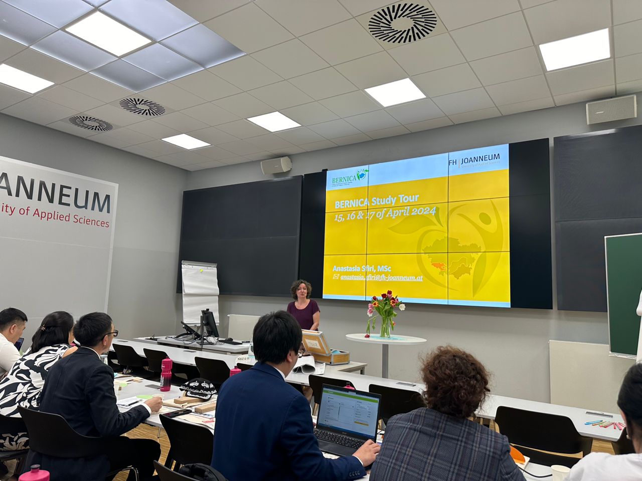 15.04.2024 начался очередной учебный тур в рамках проекта BERNICA Erasmus+. Делегация ОшГУ во главе с деканом ММФ, координатором проекта, профессором Р.К. Калматовым, директором клиники ОшГУ, тренером-исследователем проекта, PhD Ж.Б. Иметовой и преподавателем кафедры Клинических дисциплин 1 А.Н. Оморовой познакомились с директором института Нутрициологии и диетологии при университете прикладных наук FH-Joanneum Элизабет Пэйл, MBA MSc.