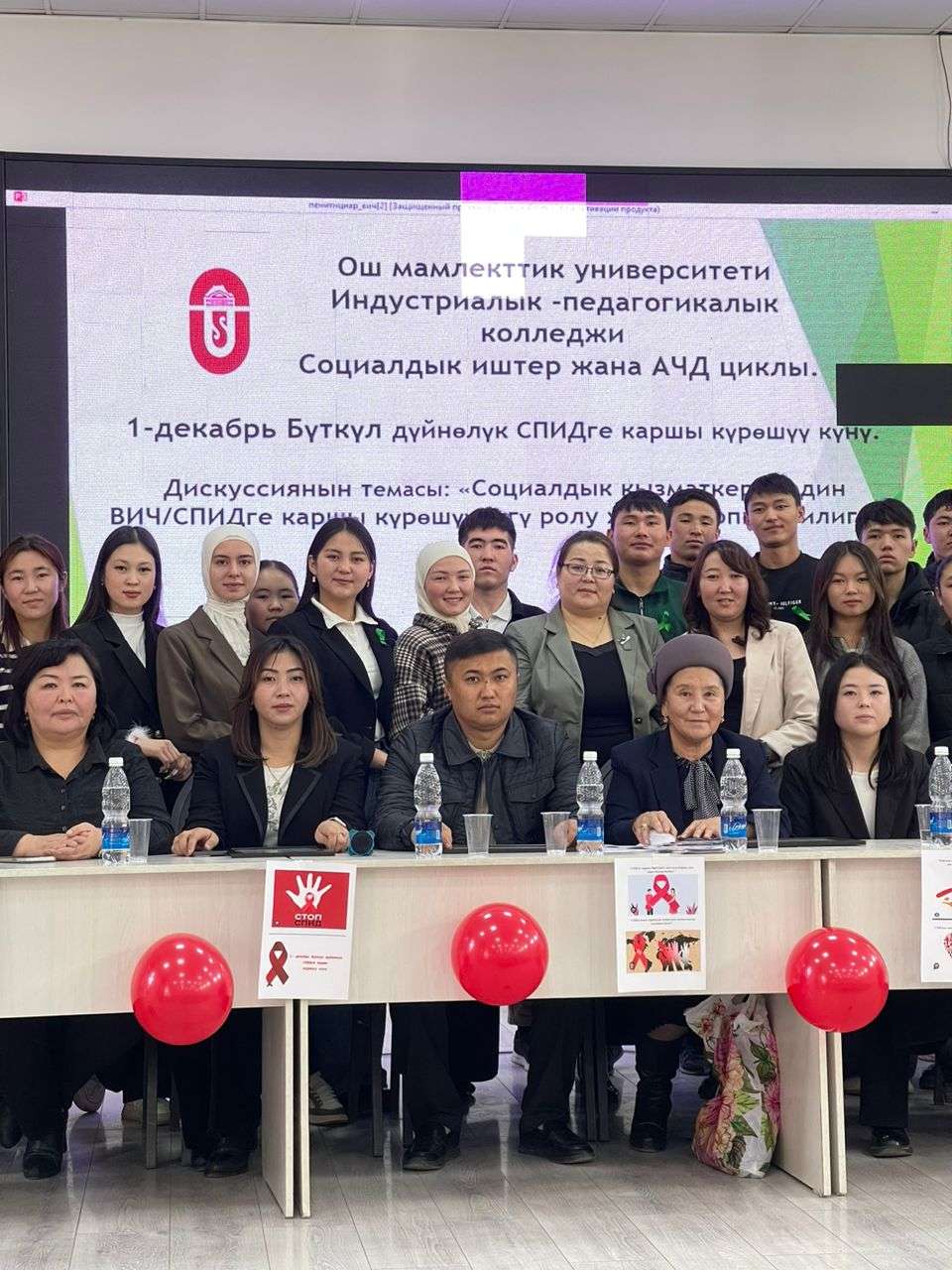 Индустриалдык-педагогикалык колледждинде Социалдык иштер адистигинин окутуучулары тарабынан Бүткүл дүйнөлүк СПИДке каршы күнүнө жараша "Социалдык кызматкерлердин ВИЧ/СПИДге каршы күрөшүүдөгү ролу жана жоопкерчилиги" алкагында дискуссия өткөрүлдү.