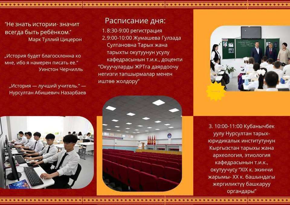 2025-жылдын 18-апрель күнү Ош мамлекеттик университетинин тарых-юридика институтунун жалпы тарых жана тарыхты окутуунун усулу кафедрасынын доценти Жумашова Гүлзада Султановна жана Кыргызстан тарыхы жана археология, этнология кафедрасынын т.и.к окутуучусу Кубанычбек уулу Нурсултан Ош шаарындагы №20 И.Раззаков орто мектебинде шаардык тарыхчы мугалимдер үчүн ЖРТга даярдоо, тексттерди окуп түшүнүү боюнча сабак-тренинг өтүп келишти. Университет менен шаардык билим берүү башкармалыгы жана шаардык тарыхчылар менен кызматташуу пландуу түрдө иш алып баруу максат кылынды.