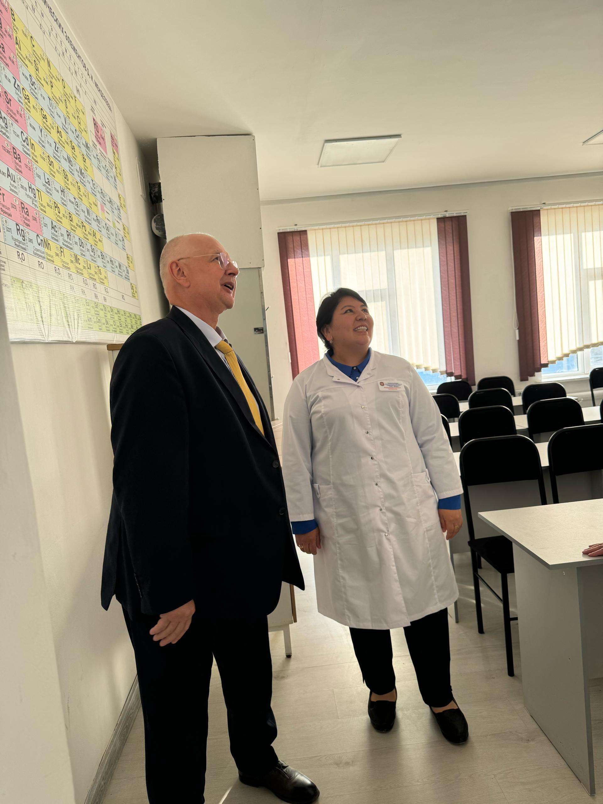 Көз карандысыз аккредитация жана рейтинг агенттигинин өкүлдөрү 2025-жылдын 23-апрель күнү медицина факультетинин табигый илимдер дисциплиналар кафедрасындагы виртуалдык лаборатория жана химиялык лаборатория менен таанышышты.