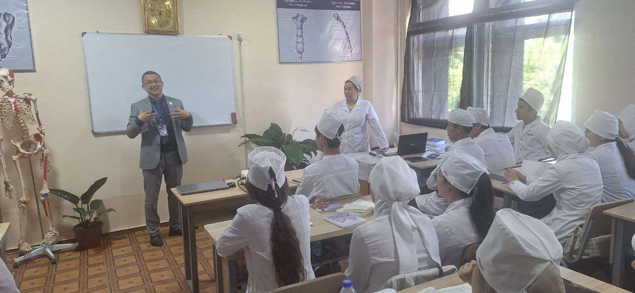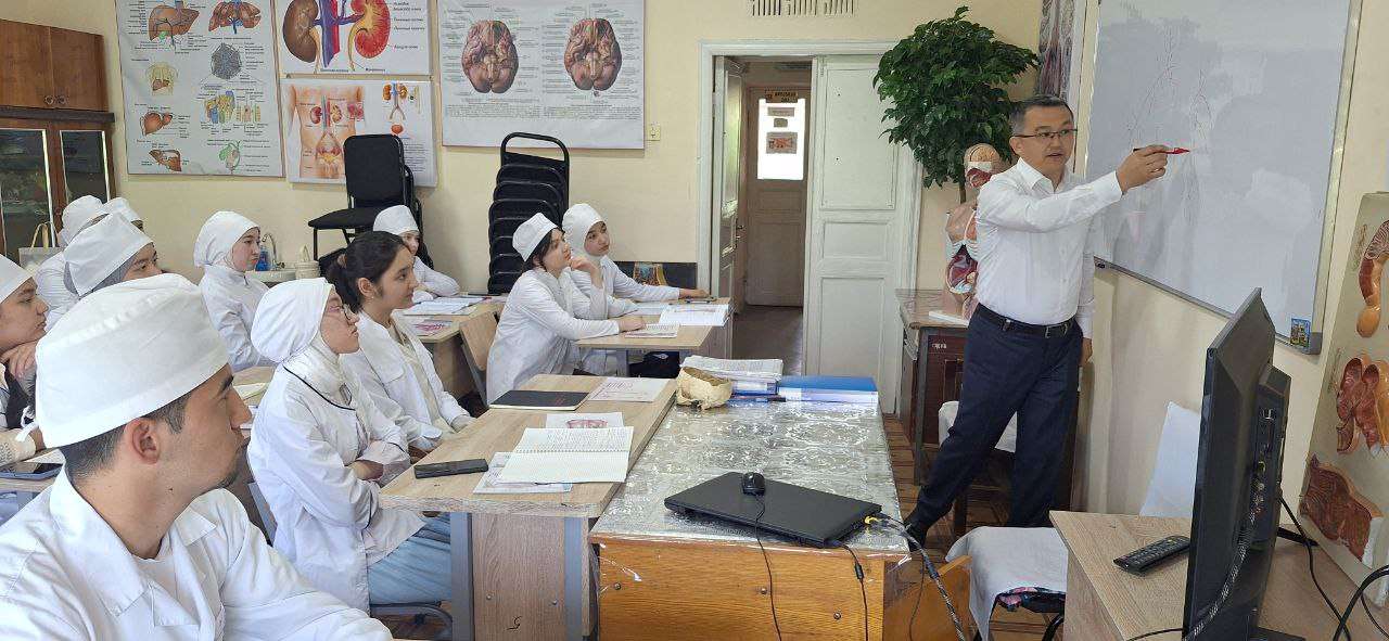 С 27 по 29 апреля 2025 года в Андижанском государственном медицинском институте прошли мероприятия, посвящённые укреплению научно-образовательного сотрудничества между вузами. В рамках этого визита доцент Кенешбаев Бекболот Капаевич, заведующий кафедрой нормальной и топографической анатомии с курсом конституциональной типологии человека Ошского государственного университета, прочитал гостевую лекцию для студентов 1 курса лечебного и педиатрического факультетов.