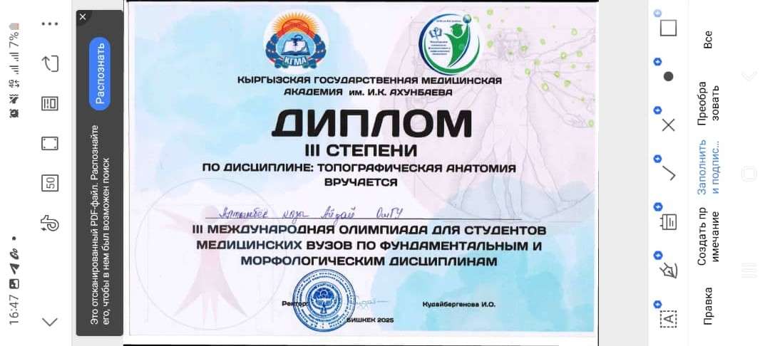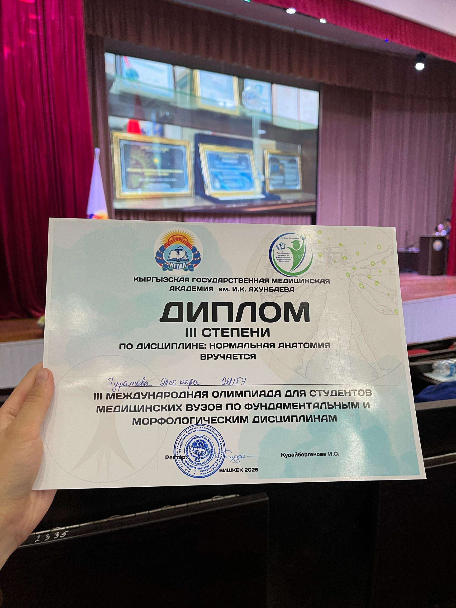 ANATOMY // МАЙ, 2024 // ІІІ МЕЖДУНАРОДНАЯ ОЛИМПИАДА ПО ФУНДАМЕНТАЛЬНЫМ И МОРФОЛОГИЧЕСКИМ ДИСЦИПЛИНАМ. КГМА Туртова Элеонора Лк-8-23. преподователь Суюнбаев А.Х.