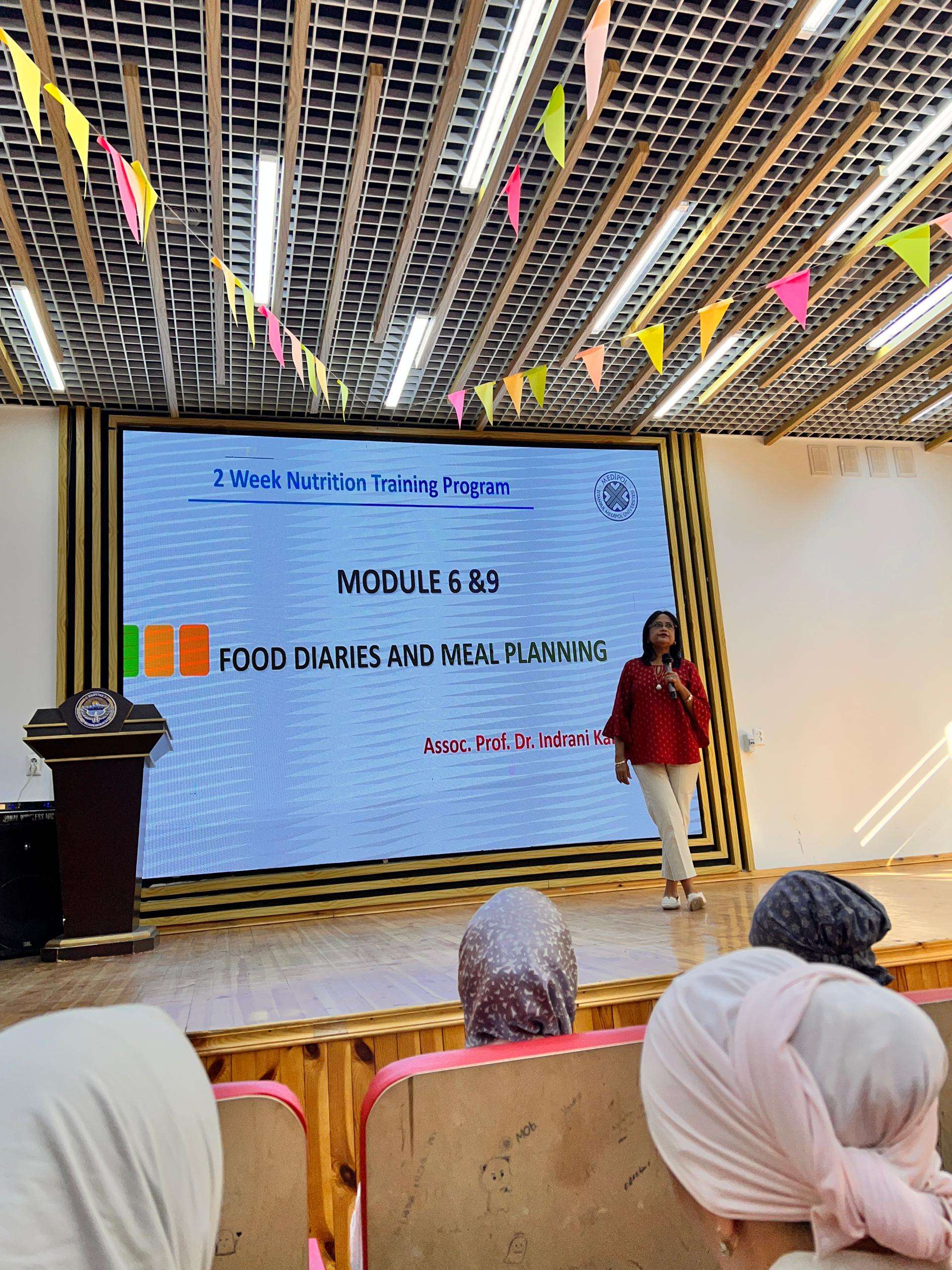 На база ОшГУ 02.09.2025-12.09.2025г. прошла международный тренинг по Нутрициологии. Спикер тренинга-профессор Университета Медипол, Стамбул, международный эксперт Индрани Калкан. Преподавалели кафедры госпитальной терапии Джээнбекова Д.К. и Айтиева А.К. приняли участие в тренинге с получением сертификата