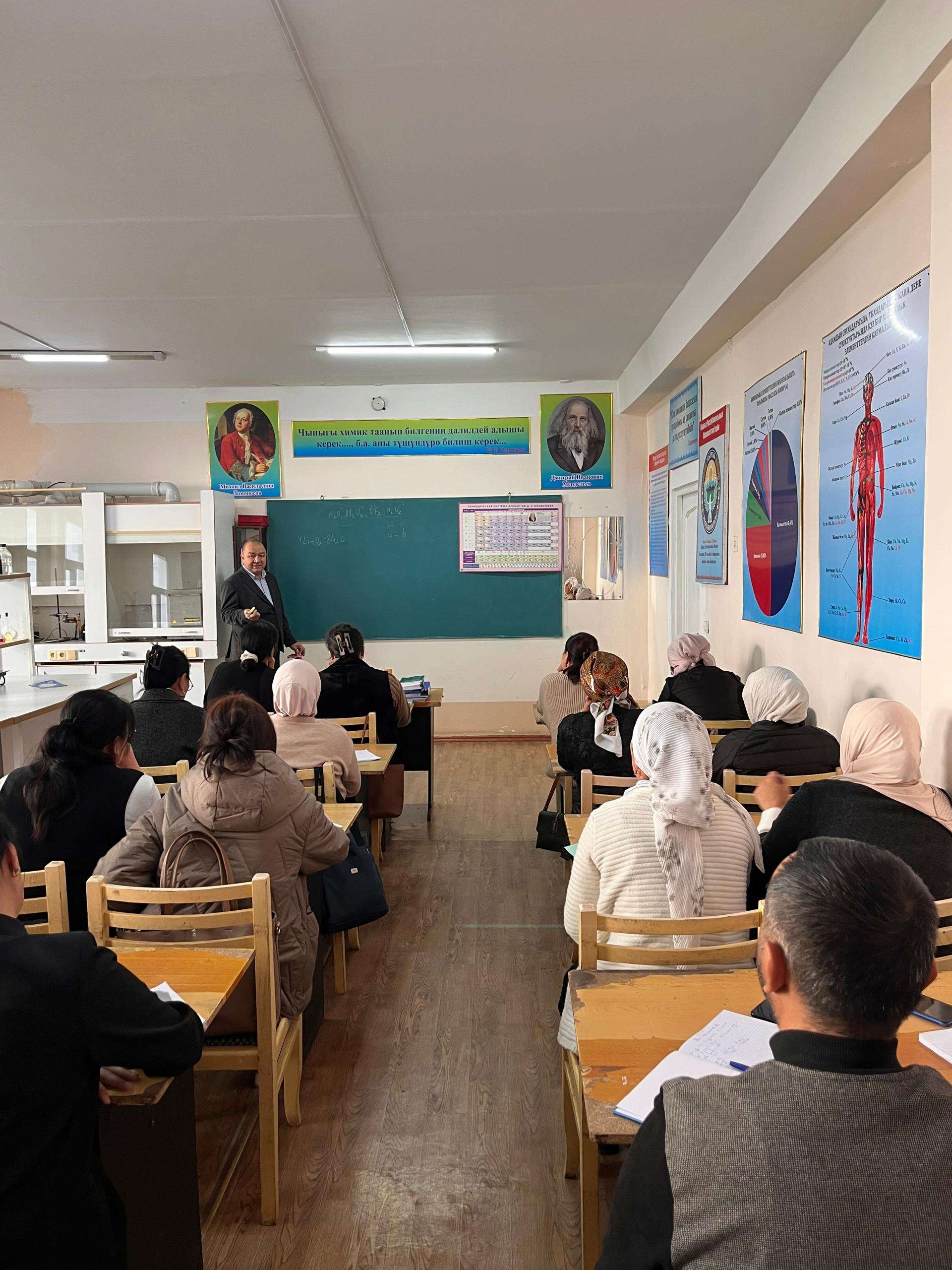 Ош мамлекеттик университетинин Табият таануу, дене тарбия, туризм жана агрардык технологиялар институтунун химия жана химиялык технологиялар кафедрасынын доценти, химия илимдеринин кандидаты Абдулазизов Тилебалды Адилович Ош билим берүү институту тарабынан уюштурулган химия мугалимдеринин квалификациясын жогорулатуу курстарында Ош облусунан катышкан 18 мугалимге «Химия предметинен маселе иштөөнүн усулдары» боюнча лекция окуду.