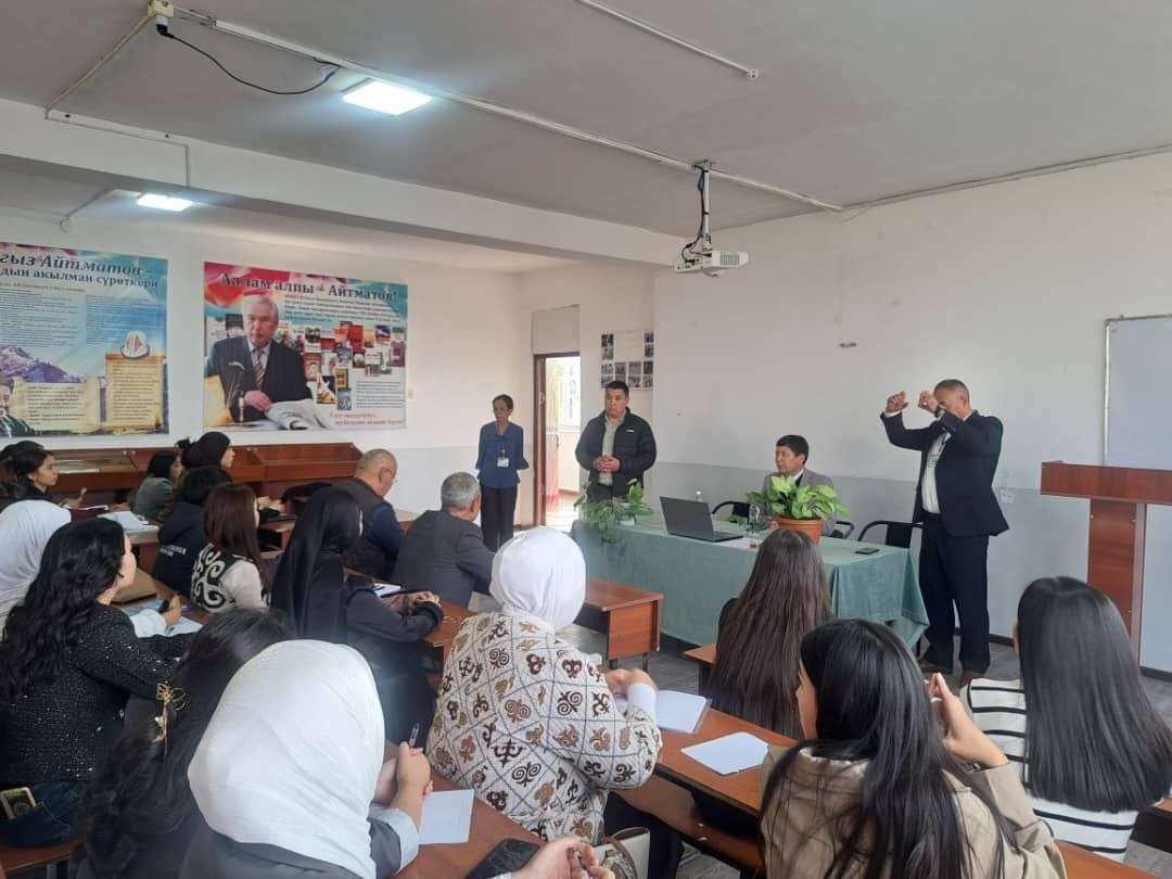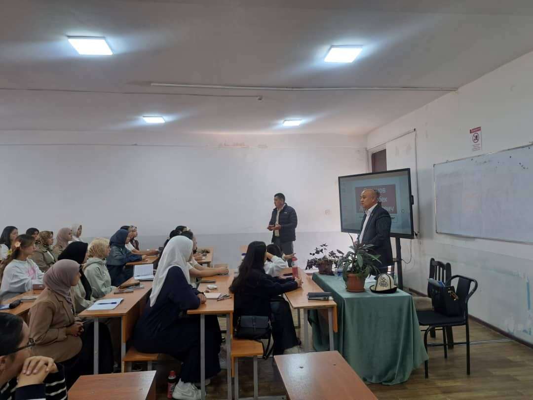 The teachers of the Public Sciences and Pre-Conscription Training Department of the Institute of Advanced Training: Tolobayev P.A., Ormonova A.T., Ormonaliev K.O., Sydykova M.T., Soltoev Z.A., Abdrakhmanova A.A., Abdibaitov M.T., and Zhorobaev B.Sh. held an event at the College of International Educational Programs dedicated to the Day of Remembrance of Victims of Political Repression in Kyrgyzstan. This is a day of mourning, reflection on the past, and respect for the courage of those whose lives were broken by unjust persecution.