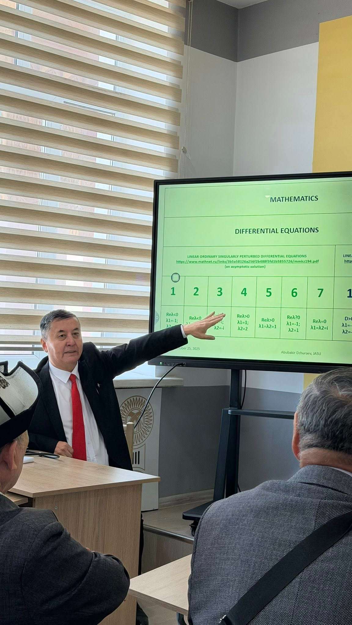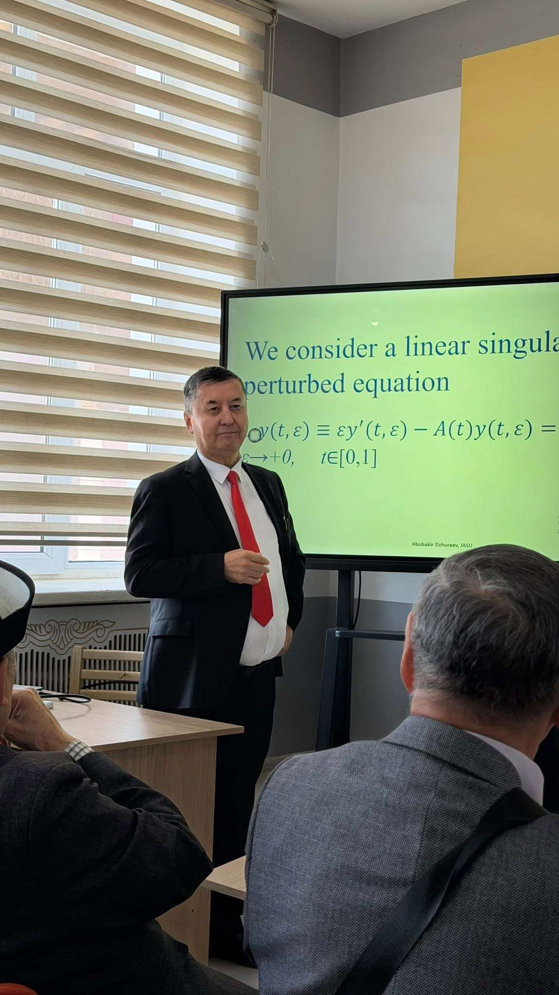 Докладчиком выступил доктор физико-математических наук, профессор ЖАМУ имени Б. Осмонова — **Жураев Абубакир Мухтарович**.