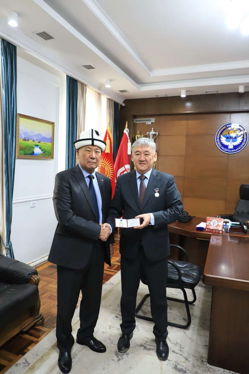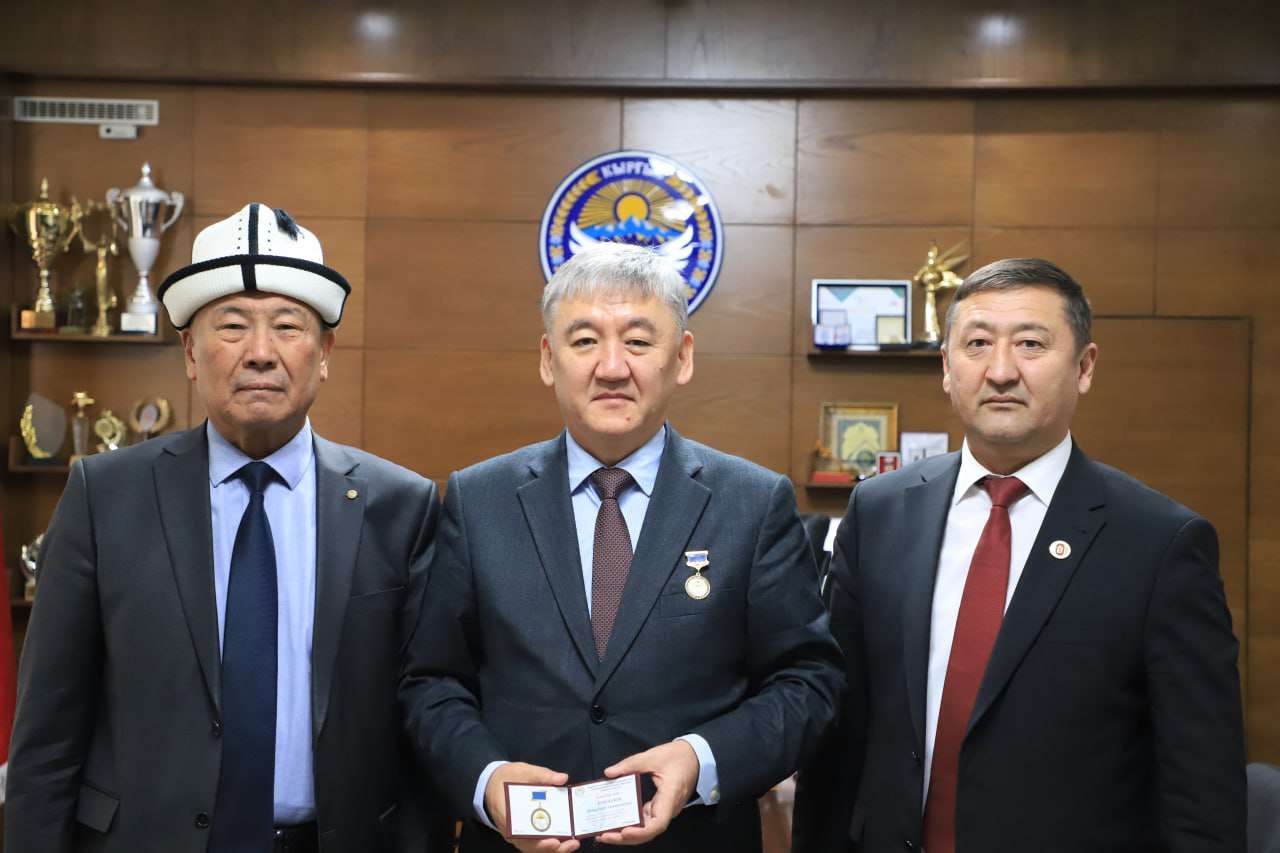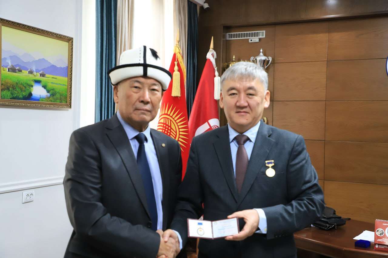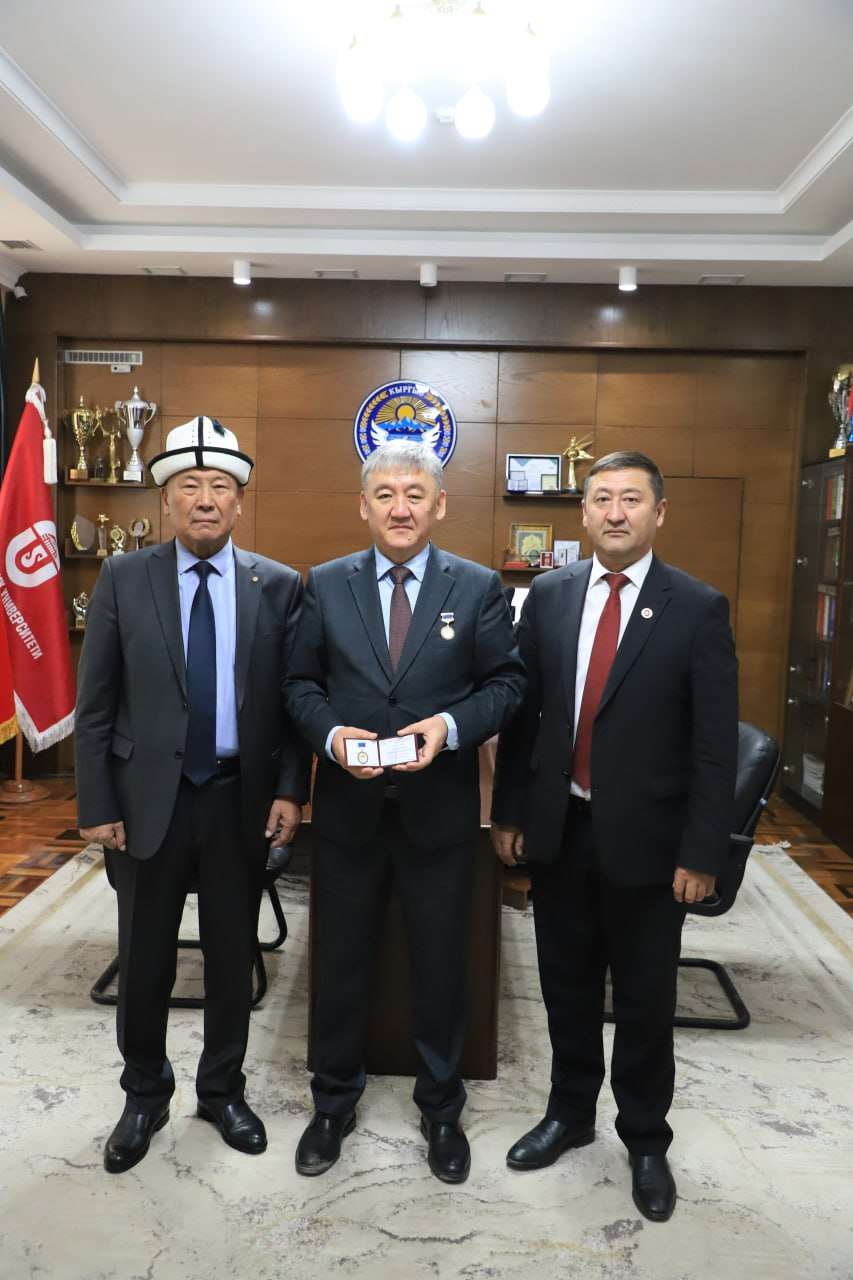 Ош мамлекеттик университетинин ректору, профессор К.Г. Кожобековго "Кыргыз Республикасынын Билим жана илим кызматкерлеринин кесиптик бирлигине 100 жыл" юбилейлик медалы менен сыйланды