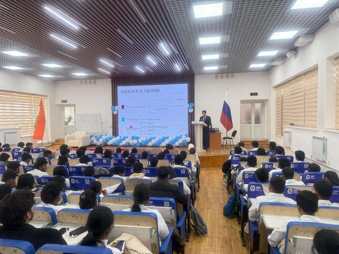 В лекции «Pathology of Tumor Growth» были подробно рассмотрены основные механизмы опухолевого роста: нарушения клеточного цикла и апоптоза, роль сигнальных путей, значимость микроокружения опухоли, ангиогенеза и воспалительных процессов. Особое внимание было уделено современным биомаркерам пролиферации и перспективам таргетной и клеточно-технологической терапии. Лекция сопровождалась разбором клинических примеров и живой дискуссией с аудиторией.