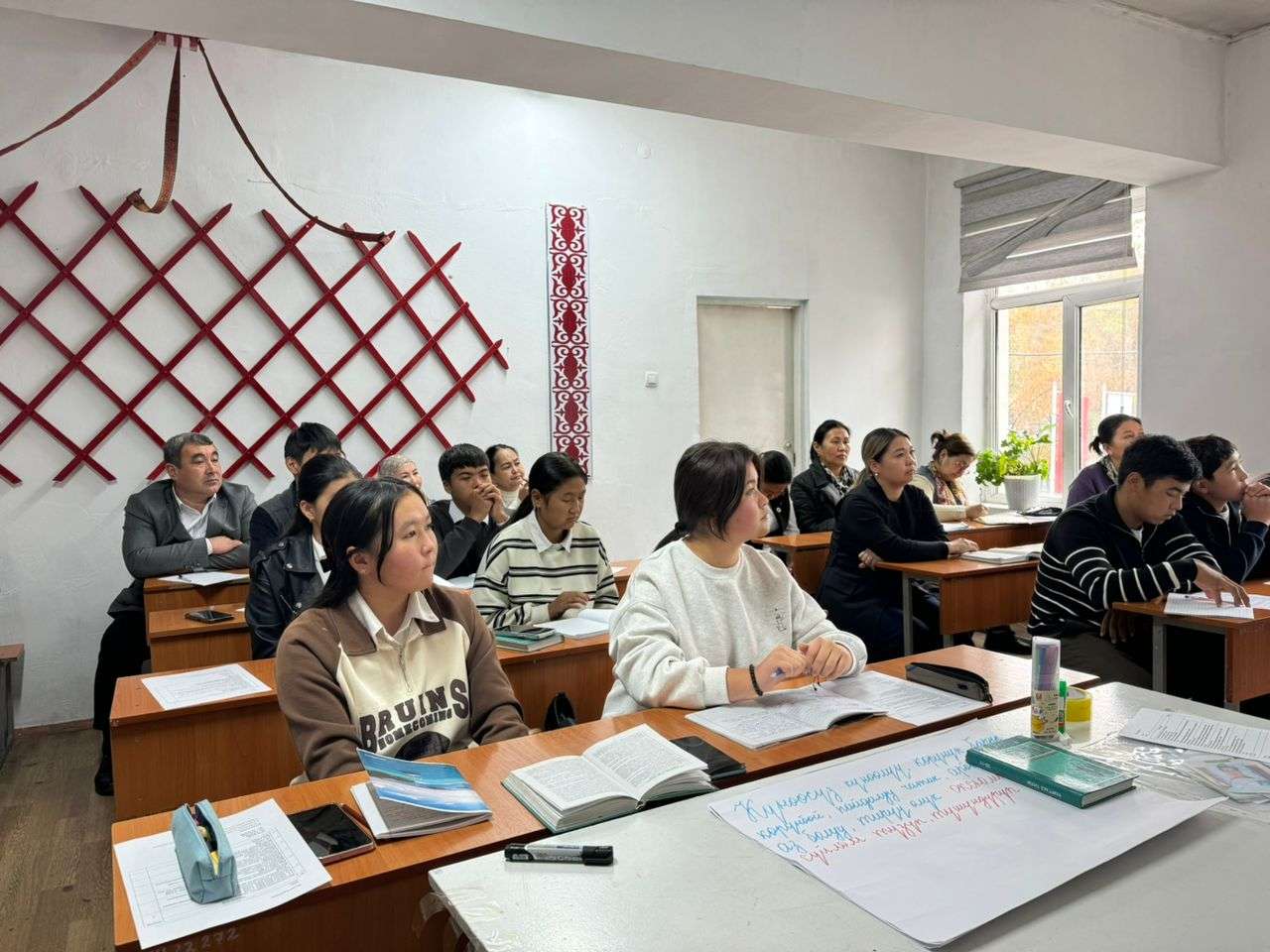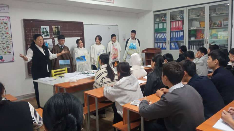 Окутуучу Эшимбекова Үмүтай кыргыз адабияты сабагынан Тоголок Молдонун “Кемчонтой” аңгемесин өтүп, студенттер менен чыгарманы мазмундук жана идеялык жактан талдоого алды. Сабакта адамгерчилик, боорукердик жана жоопкерчилик темалары кеңири ачылып, студенттердин адабиятка болгон кызыгуусу артты.
