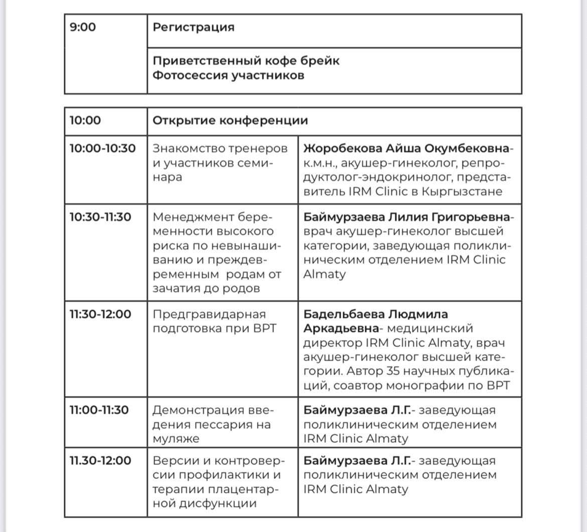 1.Бадельбаева Л.А. -мед.директор IRM Clinic Almaty, акушер–гинеколог высшей категории
