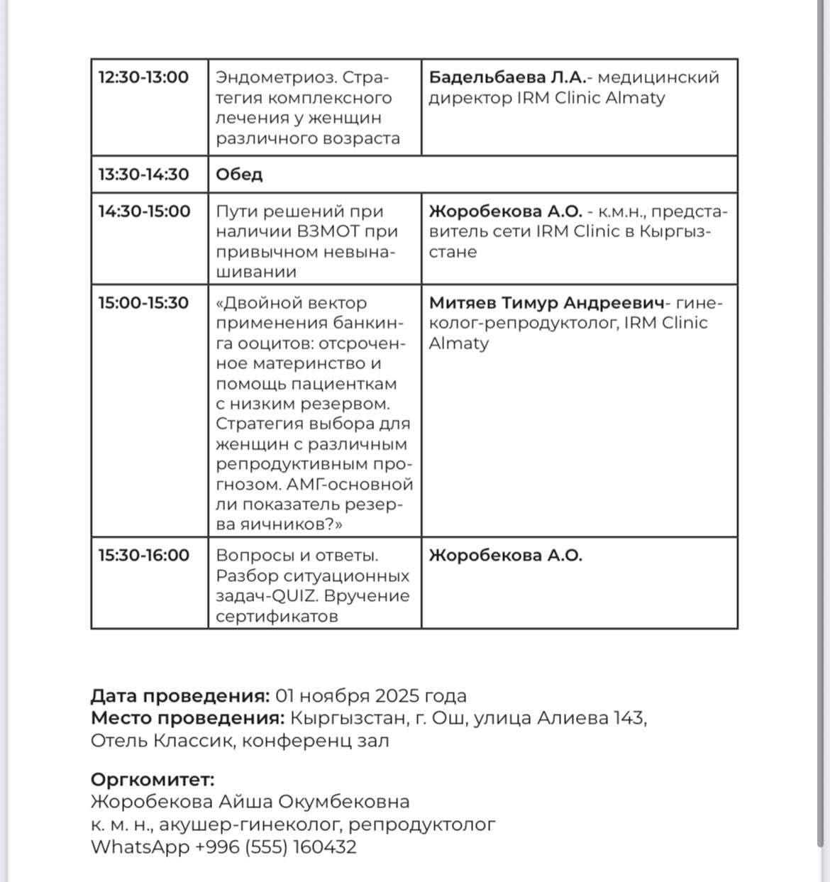 3.Жоробекова А.О.-к.м.н, акушер-гинеколог, репродуктолог-эндокринолог, представитель IRM Clinic в Кыргызстане