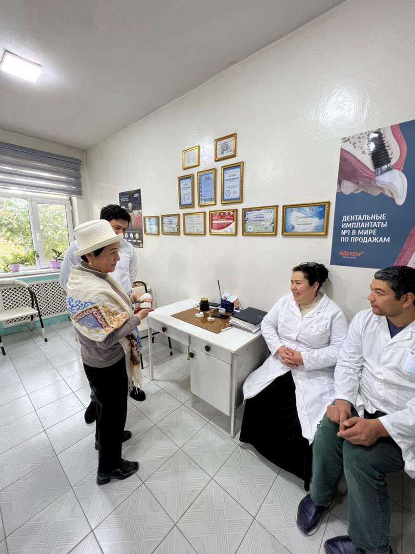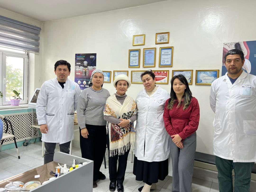 Заведующая отделом программ стоматологических специальностей Центра последипломного медицинского образования Ошского государственного университета Эргешова Г.С. вместе с клиническими руководителями Уланбек кызы Майрамгул и Кутмаматовой Ырысбубу, посетила государственную поликлинику Sino района Кува Ферганской области.