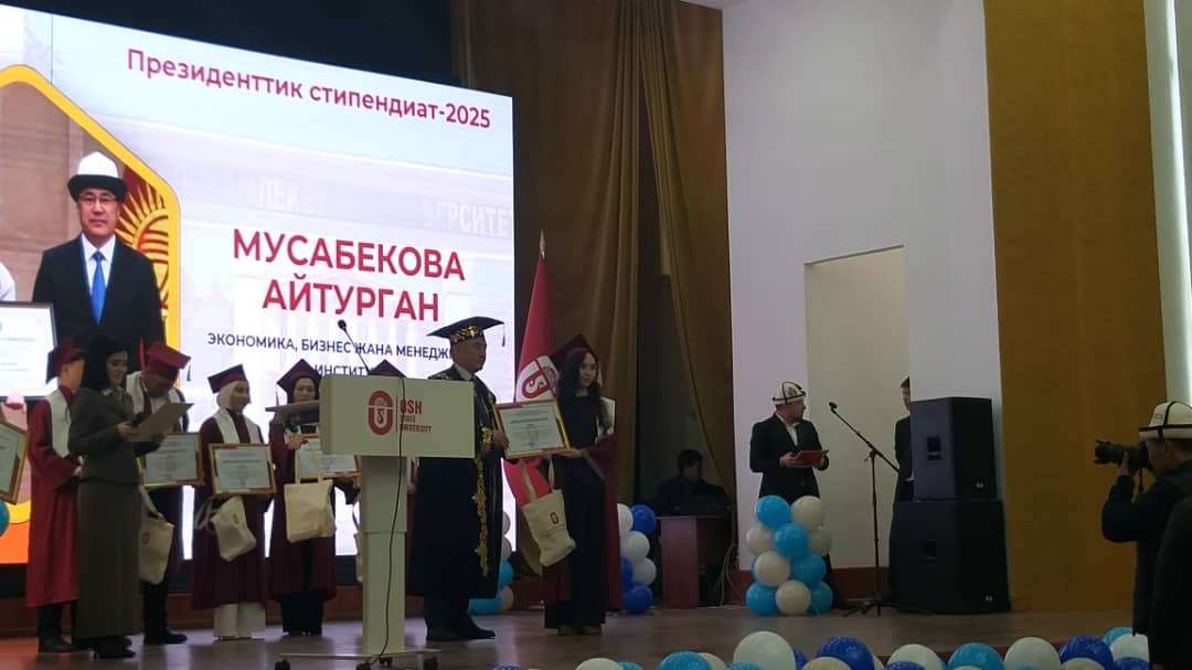 2. Бизнес-информатика адистигинин студенти Мусабекова Айтурган “Президенттик стипендия” алгандыгы үчүн ОшМУнун ректорунун колунан ыраазычылык кат менен сыйланды;