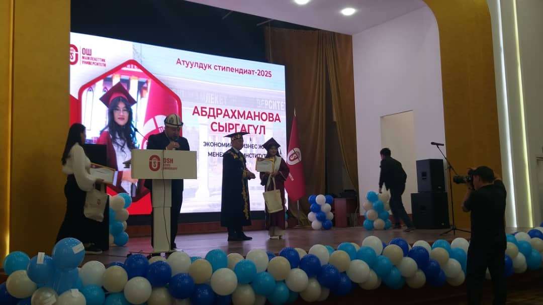 Иш чаранын жүрүшүндө ОшМУнун алдыңкы студенттери сыйланды.
