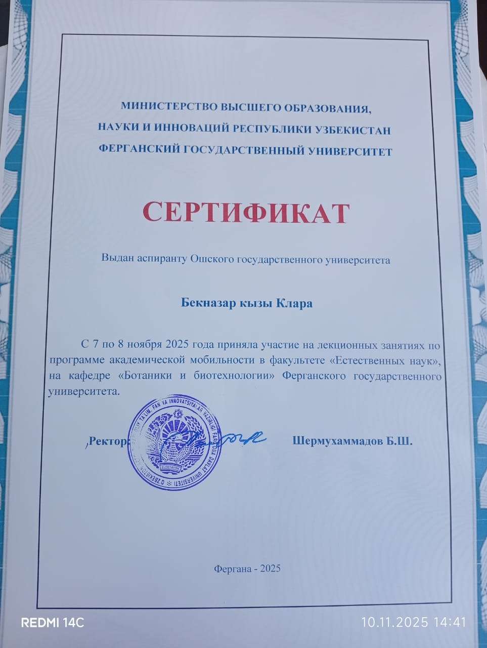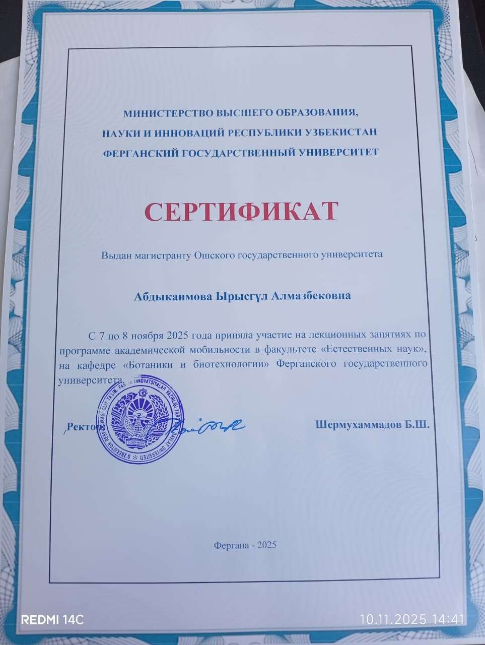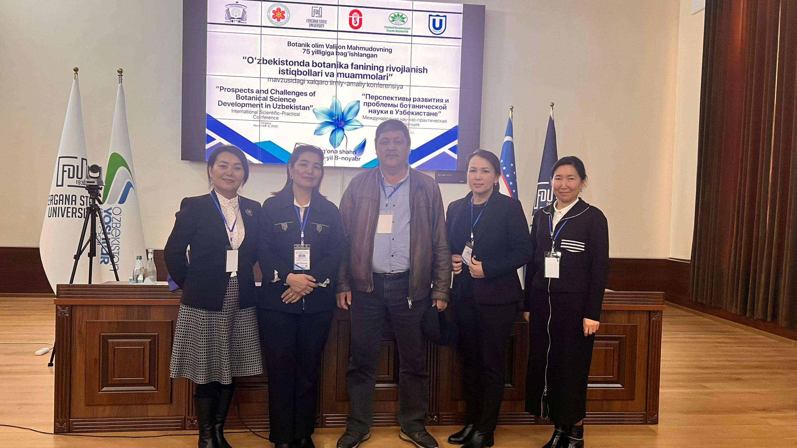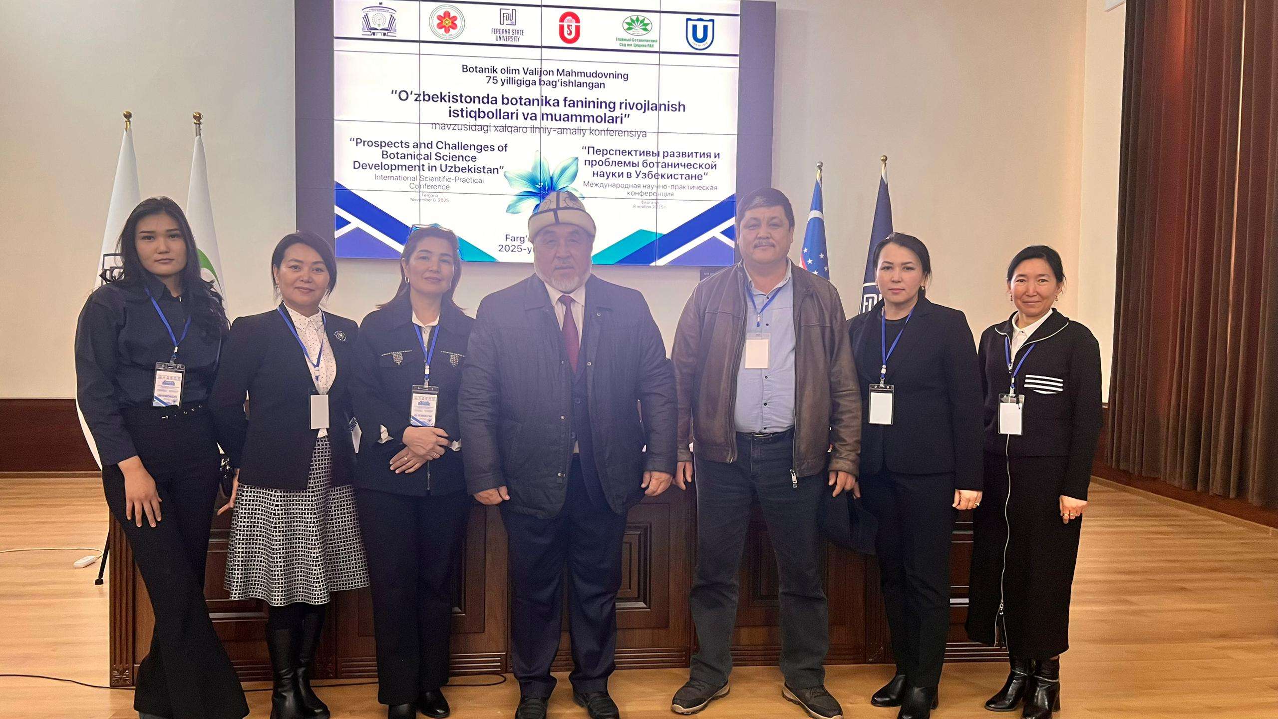 7–8 ноября 2025 года преподаватели кафедры ботаники, общебиологических дисциплин и БОУ, а также кафедры зоологии, экологии и биоинженерии Института естествознания, физического воспитания, туризма и аграрных технологий ОшМУ — Орунбек Коланов, Болот Каримов, Айназик Боронбаева, Орозбай Маматкулов, Аида Дурсунбаева, Фатима Маткаримова, Жазгүл Абдырахманова, а также аспиранты и магистранты — приняли участие в международной научно-практической конференции «Перспективы и проблемы развития ботанической науки в Узбекистане», посвящённой 75-летию выдающегося ботаника В. Махмудова, которая прошла в Ферганском государственном университете (Республика Узбекистан).