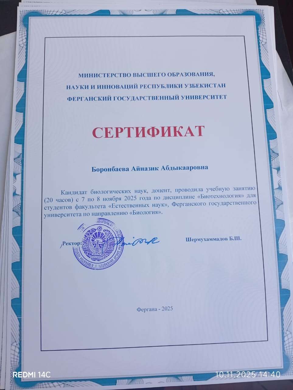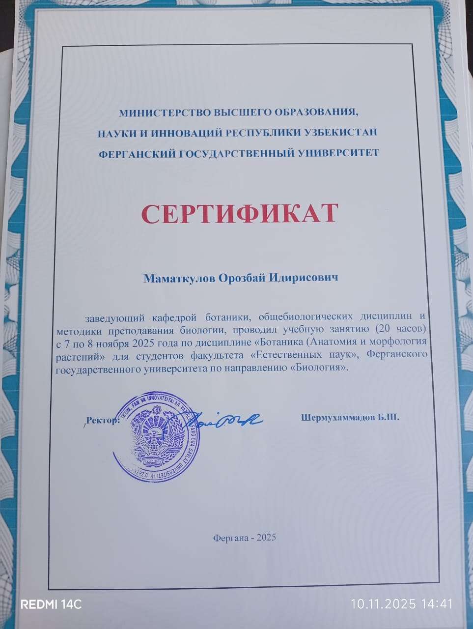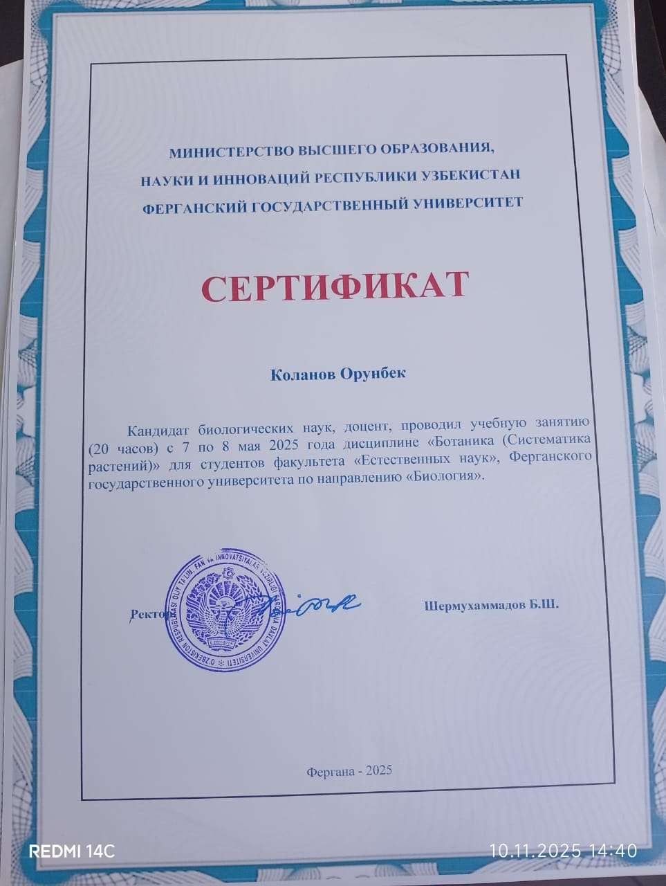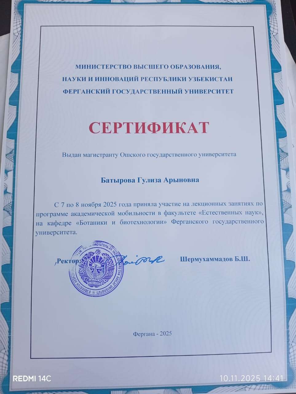 7–8 ноября 2025 года преподаватели кафедры ботаники, общебиологических дисциплин и БОУ, а также кафедры зоологии, экологии и биоинженерии Института естествознания, физического воспитания, туризма и аграрных технологий ОшМУ — Орунбек Коланов, Болот Каримов, Айназик Боронбаева, Орозбай Маматкулов, Аида Дурсунбаева, Фатима Маткаримова, Жазгүл Абдырахманова, а также аспиранты и магистранты — приняли участие в международной научно-практической конференции «Перспективы и проблемы развития ботанической науки в Узбекистане», посвящённой 75-летию выдающегося ботаника В. Махмудова, которая прошла в Ферганском государственном университете (Республика Узбекистан).