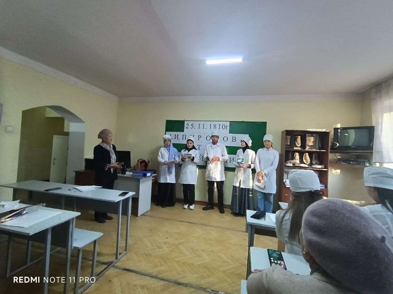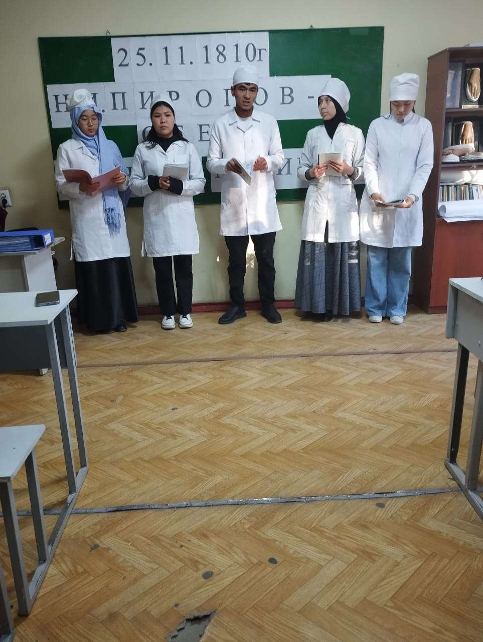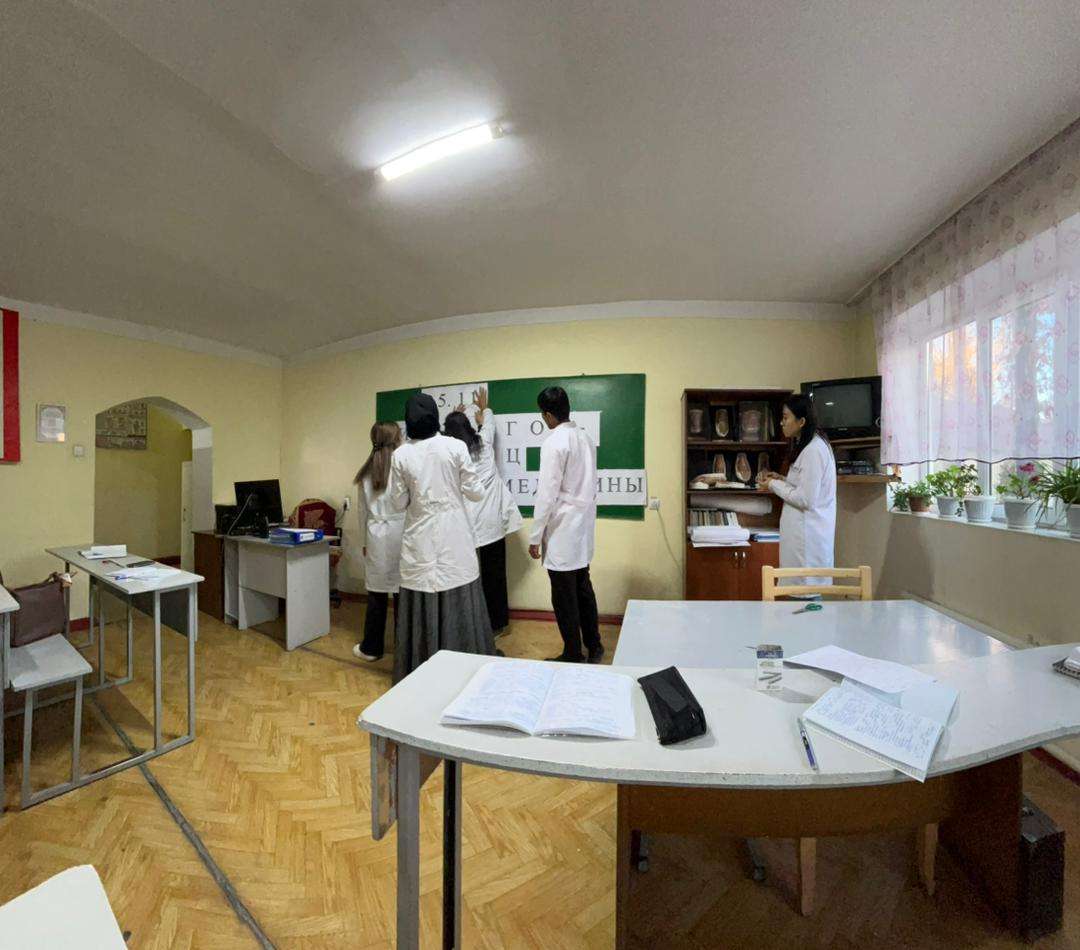 2025-жылдын 25-ноябрь күнү “Аскердик-медициналык даярдоо жана өмүр коопсуздугу” кафедрасынын улук окутуучусу Ы.А. Перханова улуу врач, аскердик- талаа хирургу, аскердик медицина жана медициналык кызматты уюштуруу жана анын тактикасы дисциплинасын негиздөөчүсү Николай Иванович Пироговдун туулган күнүнө арналган ачык сабак өттү. Ачык сабак медицина факультетинин 3-курс “Дарылоо иши” адистигинин 2-агымында өтүп, студенттер Пироговдун өмүр баяны, аскердик медицинага кошкон эбегейсиз салымы тууралуу кызыктуу баяндамаларды жасашты.