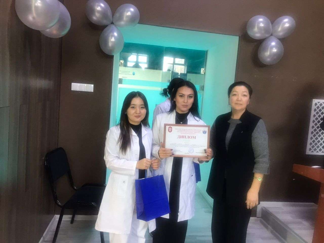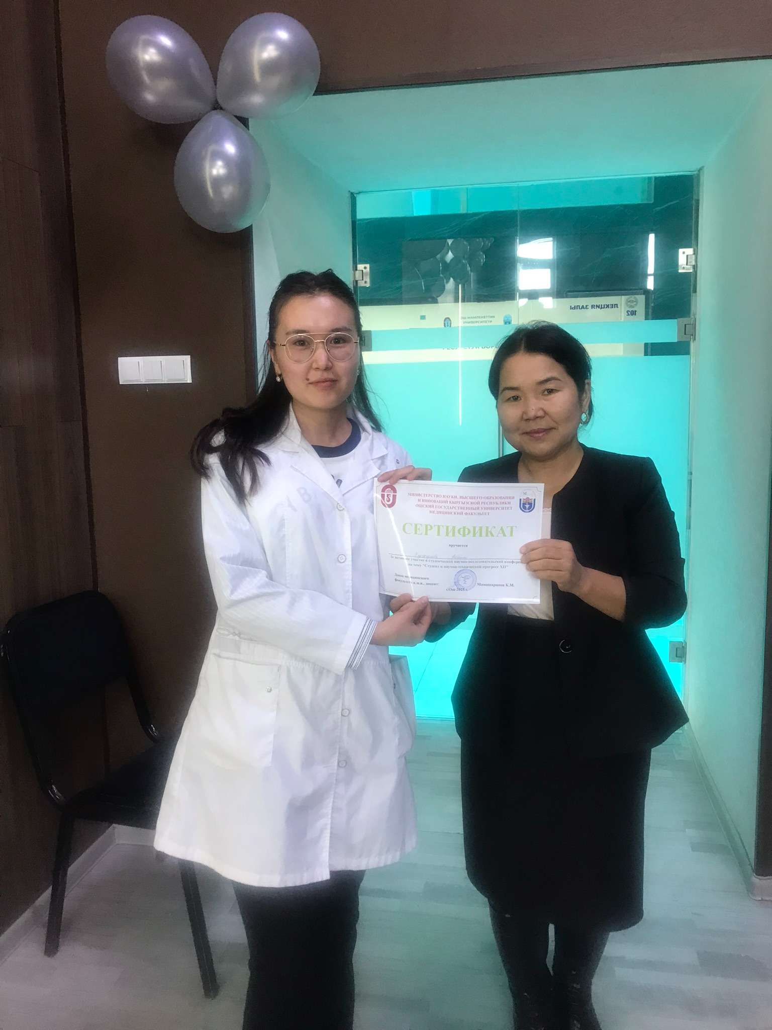 По итогам ХХХ научно-студенческой конференции «Студент и научно-технический прогресс XII» состоялось торжественное награждение отличившихся участников. Декан медицинского факультета ОшГУ Мамашарипов К.М. поздравил студентов с успешным участием, выразил признательность за активность и стремление к науке, а также вручил дипломы и памятные призы победителям.