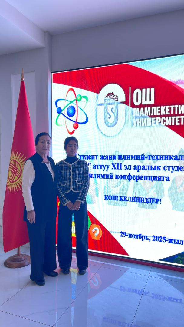 2025- жылдын 29- ноябрында ОшМУда "Студент жана илимий- техникалык прогресс" аталышында Xll эл аралык студенттердин илимий конференциясы болуп өттү. Анда педагогика, искусство жана журналистика институтунун ПБ1-25 агымынын студенти Калдарбекова Неля учурдагы актуалдуу маселени көтөргөн "Балдардын сүйлөө кебиндеги көйгөйлөрдү чечүүгө багытталган ыкмалар" аттуу темада баяндама жасап, сертификатка ээ болду. Мазмунунда актуалдуу маселени камтыгандыгы менен баяндама көпчүлүктүн көңүлүн өзүнө бурду. Илимий жетекчиси - филология илимдеринин кандидаты, факультеттер аралык кыргыз тили кафедрасынын доценти С.Давлатова.
