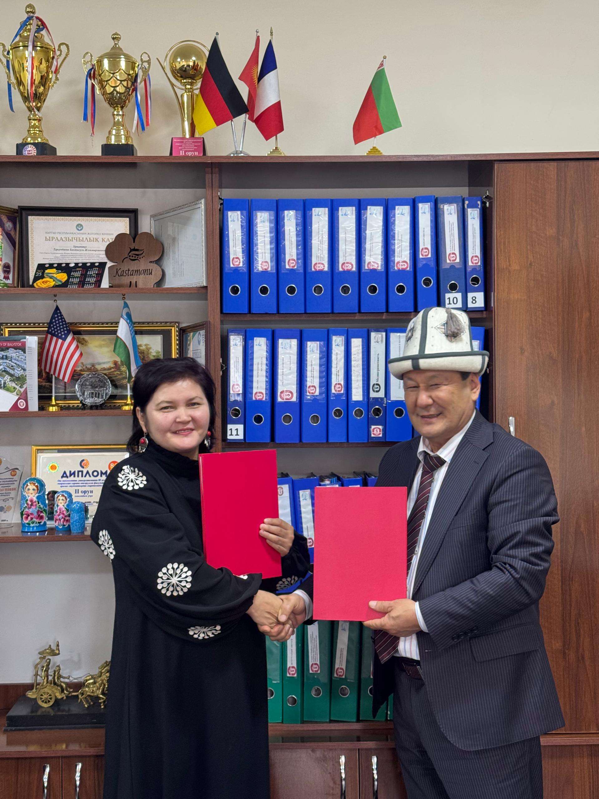 12.12.2025 кафедра фонетики и грамматики английского языка ИФиМК Ошского государственного университета совместно с кафедрой филологии Международного университета «Ала-Тоо» подписали двустороннее соглашение о реализации проекта на 2025–2029 годы на тему «Межкультурная коммуникация в цифровую эпоху: лингвистические и культурные барьеры», направленного на интеграцию целей устойчивого развития в преподавание филологии и английского языка.