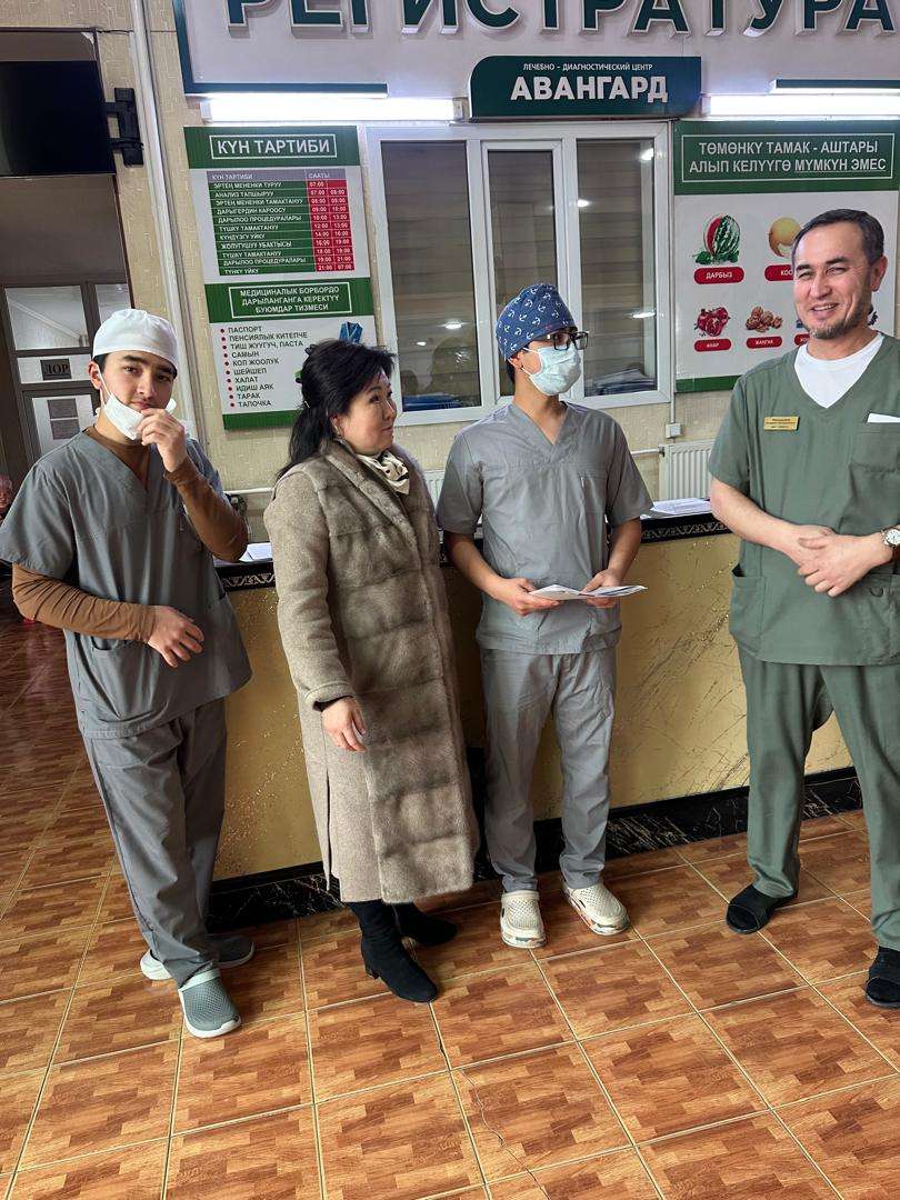 Студенттердин практикасынан жооптуу окутуучулар Ажикулова В.С. жана Жообасарова Д.Ж. жер-жерлерди кыдырып, стационарларды жана ооруканаларды текшерүү менен студенттердин практикалык ишмердүүлүгүн көзөмөлдөп жүрүшөт.