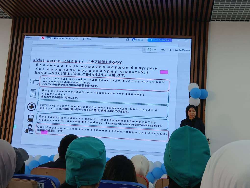 СТУДЕНТТЕР ЖАНА БҮТҮРҮҮЧҮЛӨР ҮЧҮН СОНУН ЖАҢЫЛЫК! Япониядан иш берүүчүлөр ОшМУнун медициналык колледжине келишти! 2025-жылдын 17-ноябрь күнү медициналык колледжде Япониянын өкүлдөрү менен жолугушуу болуп өттү. Алар улгайган адамдарды кароо (caregiver) багыты боюнча расмий жумуш орундары тууралуу кеңири маалымат беришти. Студенттер жана бүтүрүүчүлөр үчүн уникалдуу мүмкүнчүлүк: Туруктуу айлык жана мыйзамдуу жумуш Коопсуз шарттарда иштөө Жеке өнүгүү жана тажрыйба топтоо Япон тилин үйрөнүүгө, кесиптик деңгээлин жогорулатууга шарттар Эл аралык деңгээлдеги карьера баштоо мүмкүнчүлүгү Кимдер катышса болот? Медициналык багыттагы студенттер, бүтүрүүчүлөр жана улгайган адамдарды кароого кызыккандар. Максат – студенттерди дүйнөлүк стандарттагы жумуш менен камсыз кылуу жана кесиптик тажрыйбасын кеңейтүү. Ош мамлекеттик университетинин Медициналык колледжи ар дайым студенттерге жаңы мүмкүнчүлүктөрдү түзүп келет. Бул жолу да чоң эшик ачылды! ОшМУ нун эл аралык мамилелер бөлүмүнүн улук окутуучусу Эсеналиева Айгулянын демилгеси менен , азыркы учурда жогорудагыдай кызуу аракеттер болуп жатат. Бул биздин окуу жайдын студенттери үчүн эң сонун мүмкүнчүлүк. Кызыктар студенттер үчүн ОшМУнун медициналык колледжинин окутуучусу Уулкыз Абдысатаровна кеңири маалымат берет. Толук маалымат жана катталуу үчүн: (0550233854, 0778233854) байланышсаныздар болот.