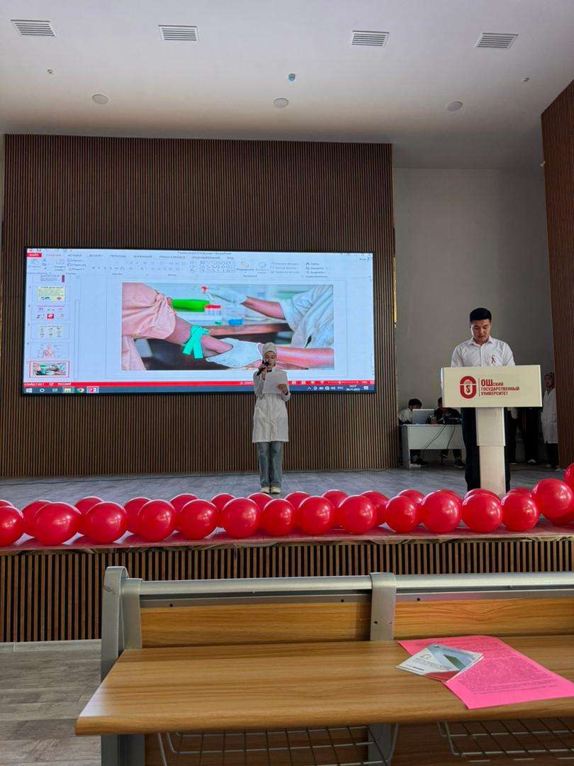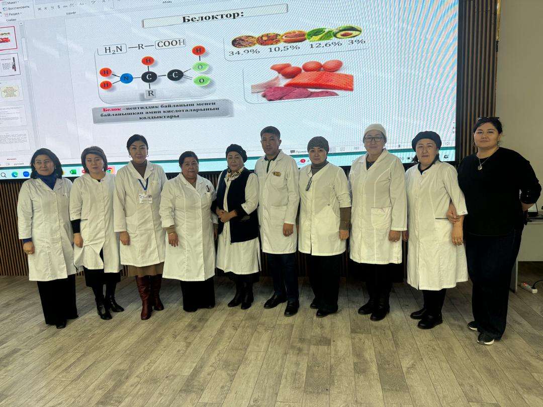 ОшМУ нун медициналык колледжинин табият таануу жана так илимдер ПЦК нын окутуучулары тарабынан "Фармация" адистигинин 1-курстун студенттери үчүн конок лекция уюштурулду. Бул конок лекцияны ОшМУ нун эл аралык медицина факультетинин табигый илимдер жана математика кафедрасынын доценти, х.и.к. Тешебаева Урниса Тиленовна "Белоктор" деген темада өтуп берди.Сабакта белоктордун медициналык мааниси боюнча кызыктуу жана жеткиликтүү маалымат берилди. Сабакта видео материалдар, слайддар колдонулуп, көргөзмолуу өтүлдү.