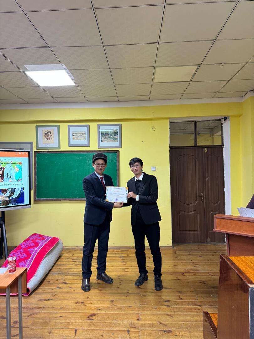 Жыйынтыгында Кыргыз Республикасынын Президентинин 2024-жылдын 18-декабрындагы ПЖ № 369 жарлыгынын негизинде Кыргыз Республикасынын "Улуттук дем – дүйнөлүк бийиктик" уңгу жолу (Кыргыз элинин жарандык аң-сезимин калыптандырууда, өлкөнүн өнүгүшүндө, улуттук маданияттын сакталышында мамлекеттик тилдин орду өзгөчөлүгү) эске алынып (2025-2026-жылга) кыргызтесттен өтүү маселелери талкууланып жыйынтыкталды. Өткөрүлгөн иш чара жыл сайын улануусу сунушталды. “Философия жана политология” кафедрасынын доценти, философия илимдеринин кандидаты – Токоева Гүлүмбү Азизбековнага ыраазычылыктар айтылды жана тегерек столду өткөрүү милдеттендирилди. Алып барган аспирант Абдуматова Софиянын мыкты алып барганын баалап ыраазычылыктар айтылды. Иш чаранын алкагында сертификаттар тапшырылды.
