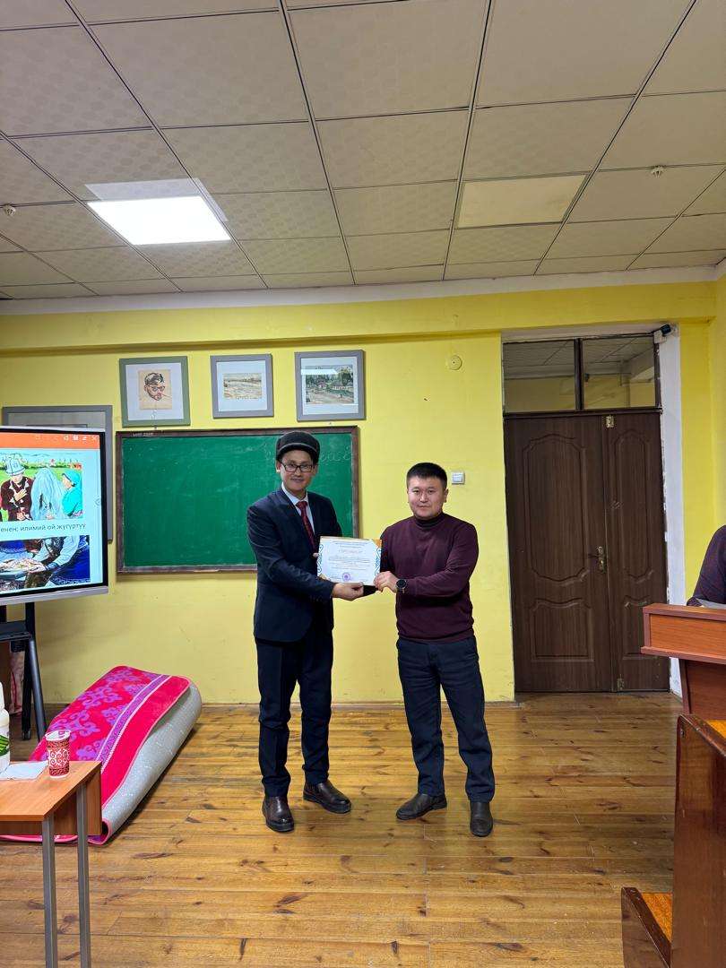2025-жыл 18-декабрында ОшМУнун социалдык изилдөөлөр бөлүмү жана философия жана политология кафедрасы жана аспирантура жана докторантура сектору тарабынан «Кыргыз салттары жаш изилдөөчүлөрдүн көзү менен: илимий ой жүгүртүү» аттуу темадагы тегерек стол болуп өттү. Аспирантура жана докторантура секторунун башчысы, б.и.к., доцент Молдалиев Жоомарт Тумакович иш чараны ачып берди.
