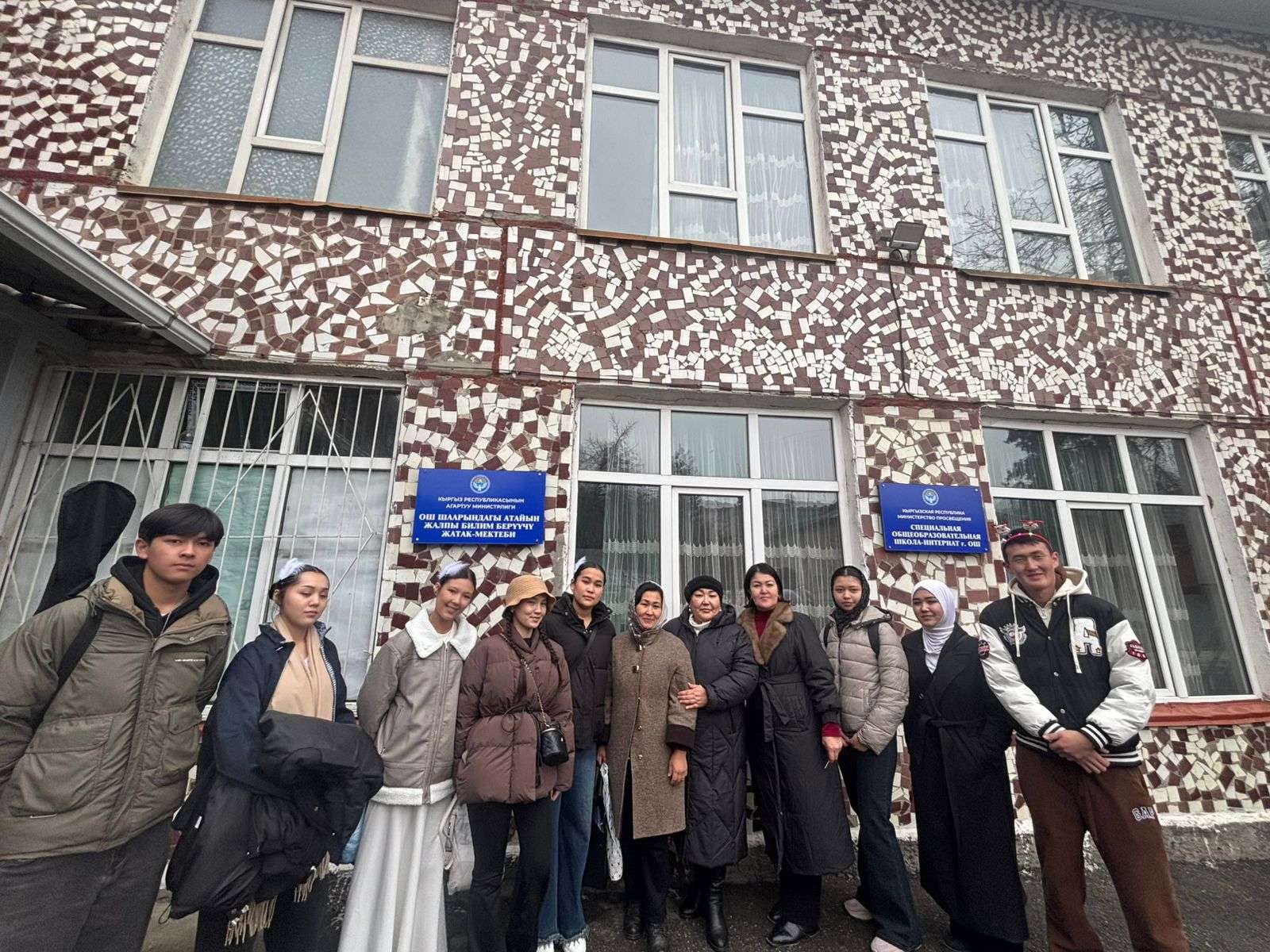 Бүгүн 19.12.2025-ж. Ош шаарындагы көзү азиз жана начар көрүүчү балдар үчүн адистештирилген жалпы билим берүүчү мектеп-интернатынын окуучулары үчүн келе жаткан Жаңы жылдык майрам өзгөчө маанайда өттү. ОшМУнун индустриалдык-педагогикалык колледждин коомдук илимдер жана АЧДББ циклынын торайымы Г.Б. Тумонбаева, окутуучулары А.А. Закирова,Н.К. Токторова жана Кубанычбек у. А. студенттер менен биргеликте бул майрамдык күндү жакшыртуу максатында интернатка барып, концерттик программа тартуулап, ар бир балага кубаныч тартуулашты. Ыр-бий, оюн-зооктор менен коштолгон иш-чара балдардын жүзүнө күлкү, жүрөгүнө жылуулук тартуулады.