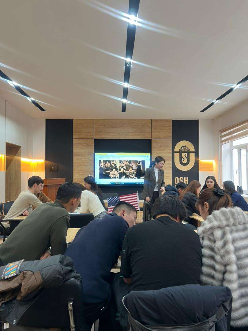 8 декабря 2025-года преподаватель отделения международных отношений ВШМОП Азизбек к Айганыш провела открытое занятие на тему «Ялтинско-Потсдамская система международных отношений» группе МО-1-23.