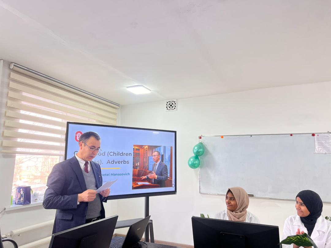 21.01.26 The Head of the Department of Social and Humanitarian Disciplines of the International Medical Faculty, Associate Professor S. M. Amiraliev, conducted an open class in the subject “Latin and English Languages” for group GM-I-16 on the topic “Childhood (Children’s Diseases). Adverbs.”