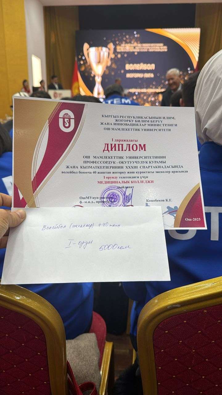 29-декабрда Ош мамлекеттик университетинде профессордук-окутуучулук курам жана кызматкерлер арасында уюштурулган XXXIII спартакиаданын жыйынтоо жана сыйлоо аземи болду. Жалпы упай менен медициналык колледждин жамааты V- орунга ээ болуп, жеңүүчүлөр кубок, диплом жана акчалай сыйлык менен сыйланды.
