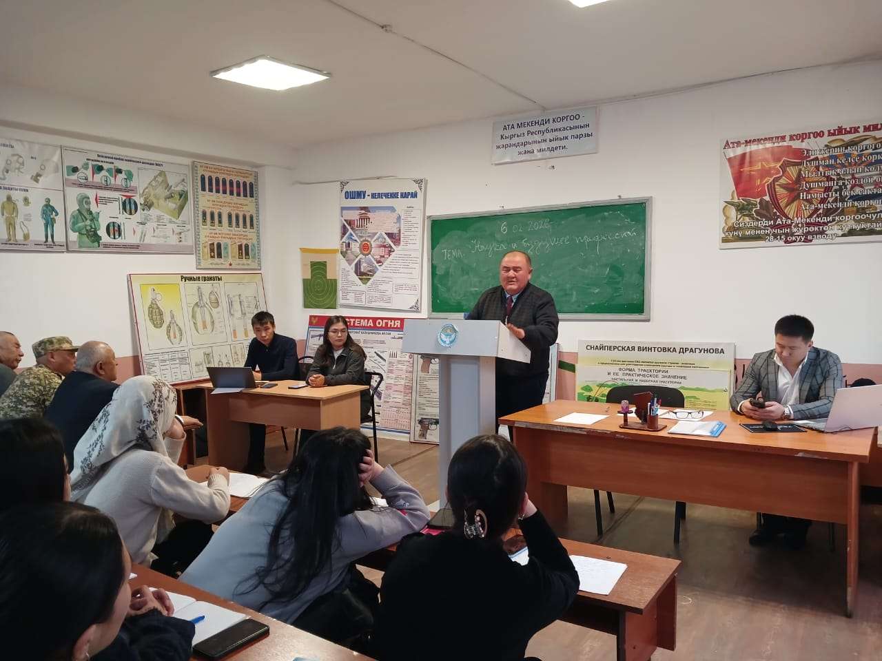 -ИПК нын Коомдук илимдер жана аскерге чейинки даярдоо билим берүү циклынын окутуучулары камдагы полковник Абдибаитов М.Т., “Илим жоопкерчилик катары” Коомдун илимий өнүгүүсүндөгү жаштардын ролу.