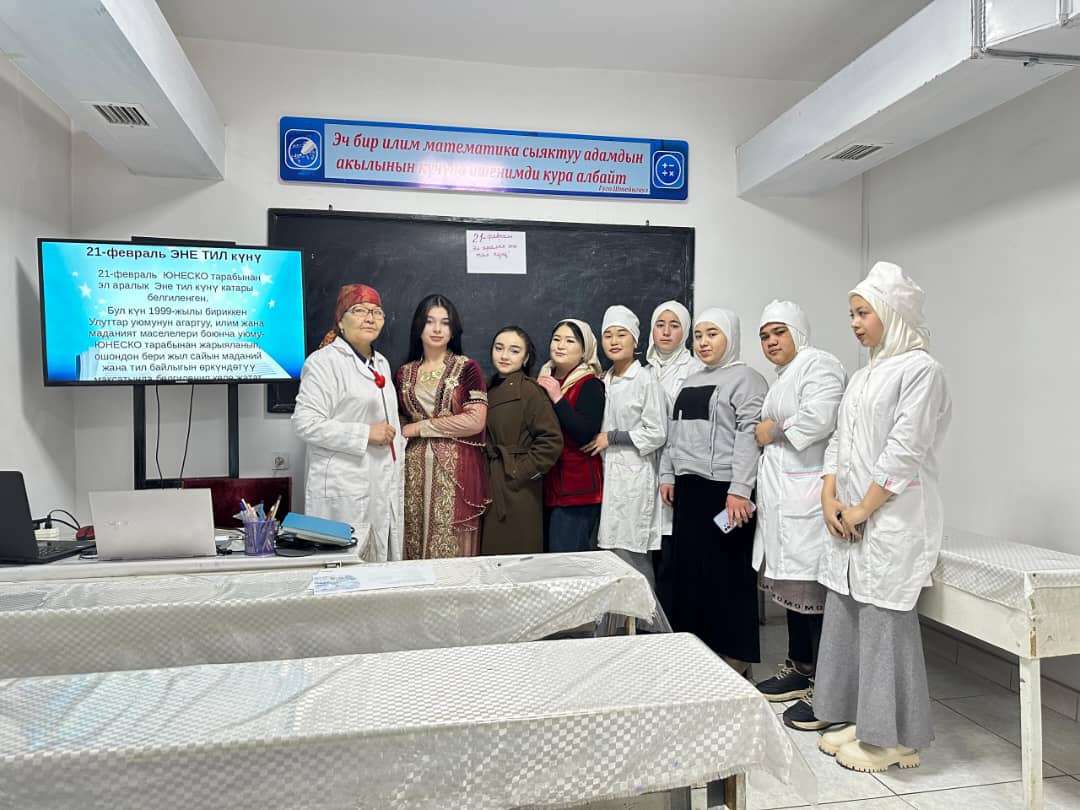 Өзгөн эл аралык медициналык колледжинин академиялык кеңешчилери тарабынан "14-февраль Бүткүл Дүйнөлүк эне тил күнүнө" карата куратордук сааттар өтүлдү. Аталган куратордук сааттар тарбия иштери боюнча директордун орун басары Э.С.Каримбаевдин жылдык иш-планына ылайык өтүлүүдө.